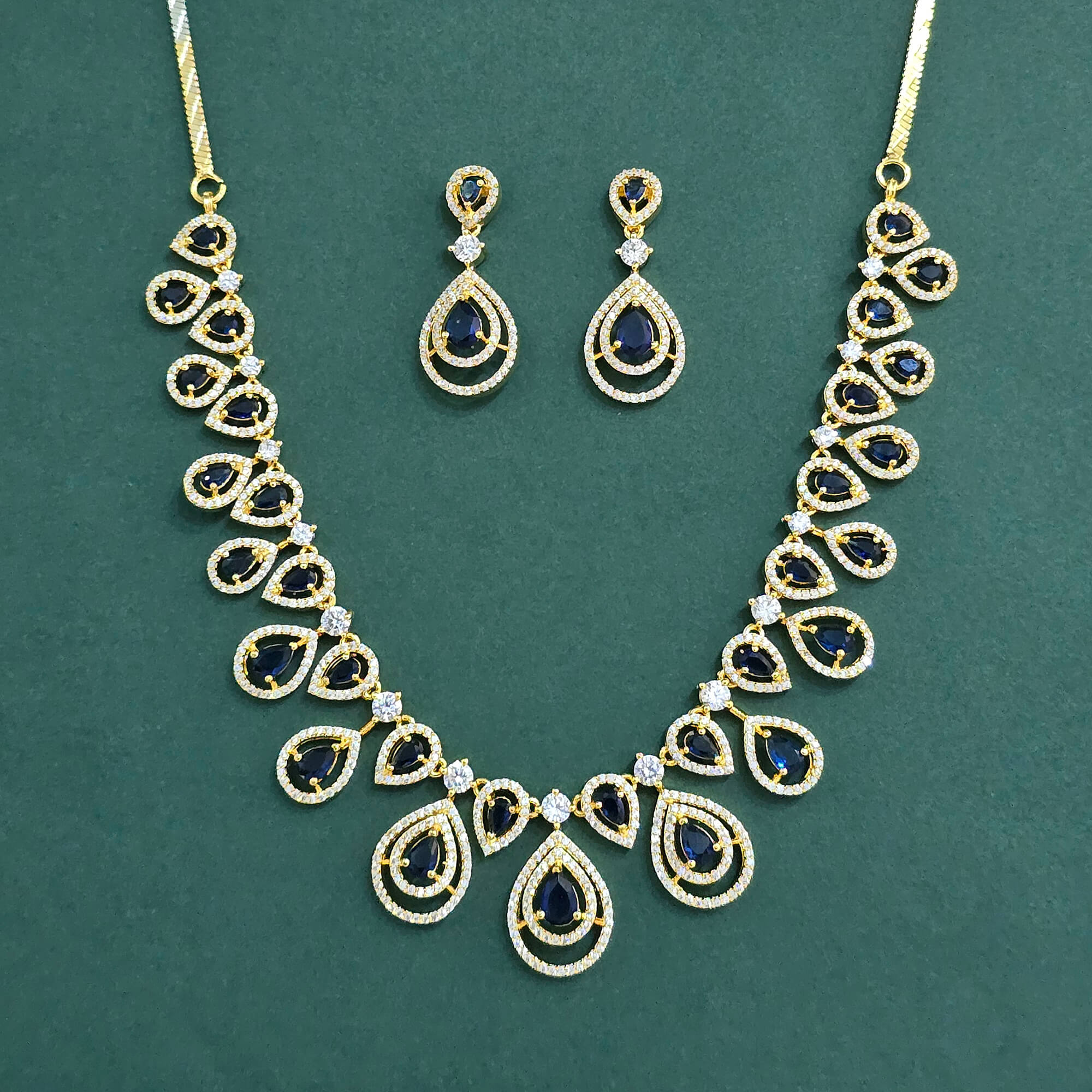 Kanhai Jewels offers an exclusive collection of finest quality crafted Fashion Jewellery in various colors. We make sure that our collection of Cz Classic Necklace Set With Gold Plating are beautiful, elegent & will surely galvanize you, because our products are unique, comfortable, fashion forward & very popular for the rich look. Base Metal of our product is Alloy, i.e Mixing of Copper & Brass. We pack all the products using quality packaging material to ensure safe and secure transportation.