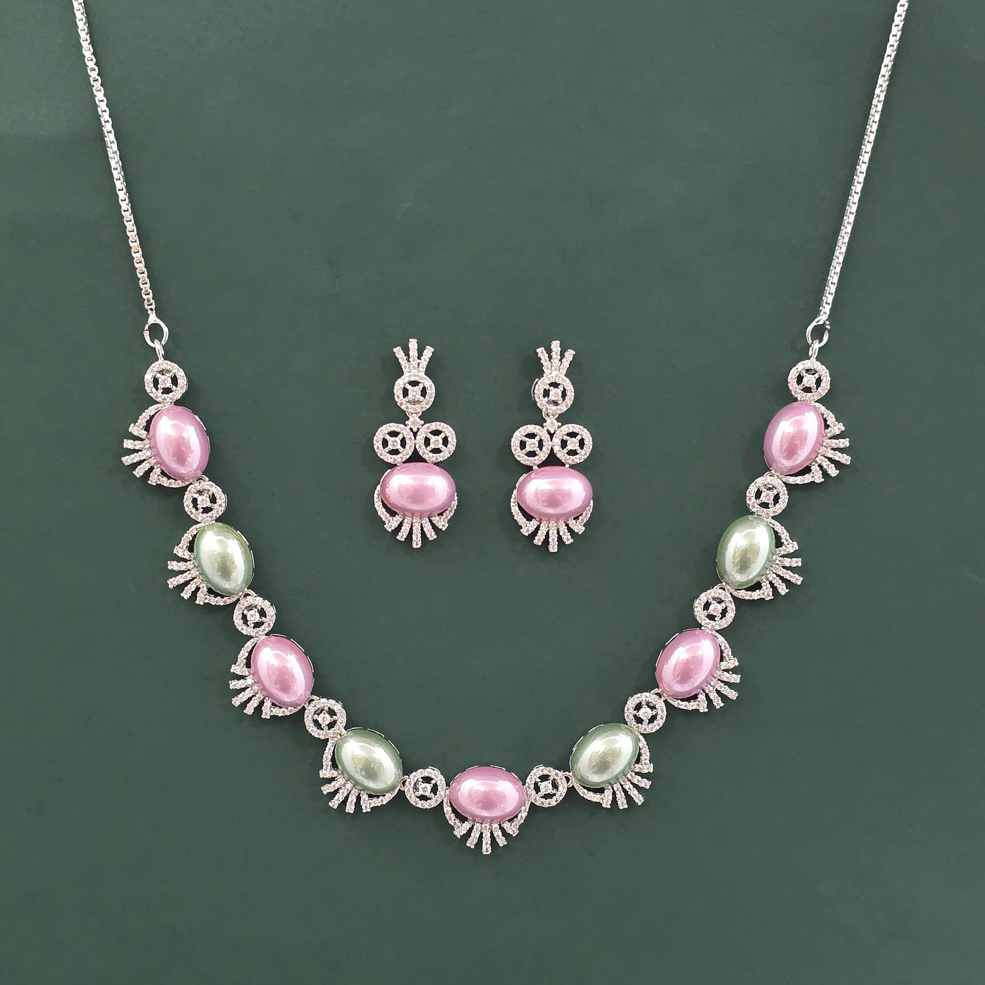 Kanhai Jewels offers an exclusive collection of finest quality crafted Fashion Jewellery in various colors. We make sure that our collection of Cz Classic Necklace Set With Rhodium Plating are beautiful, elegent & will surely galvanize you, because our products are unique, comfortable, fashion forward & very popular for the rich look. Base Metal of our product is Alloy, i.e Mixing of Copper & Brass. We pack all the products using quality packaging material to ensure safe and secure transportation.
