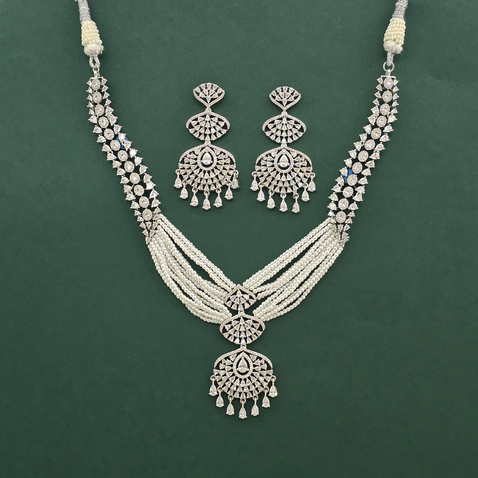 Kanhai Jewels offers an exclusive collection of finest quality crafted Fashion Jewellery in various colors. We make sure that our collection of Cz Classic Necklace Set With Rhodium Plating are beautiful, elegent & will surely galvanize you, because our products are unique, comfortable, fashion forward & very popular for the rich look. Base Metal of our product is Alloy, i.e Mixing of Copper & Brass. We pack all the products using quality packaging material to ensure safe and secure transportation.