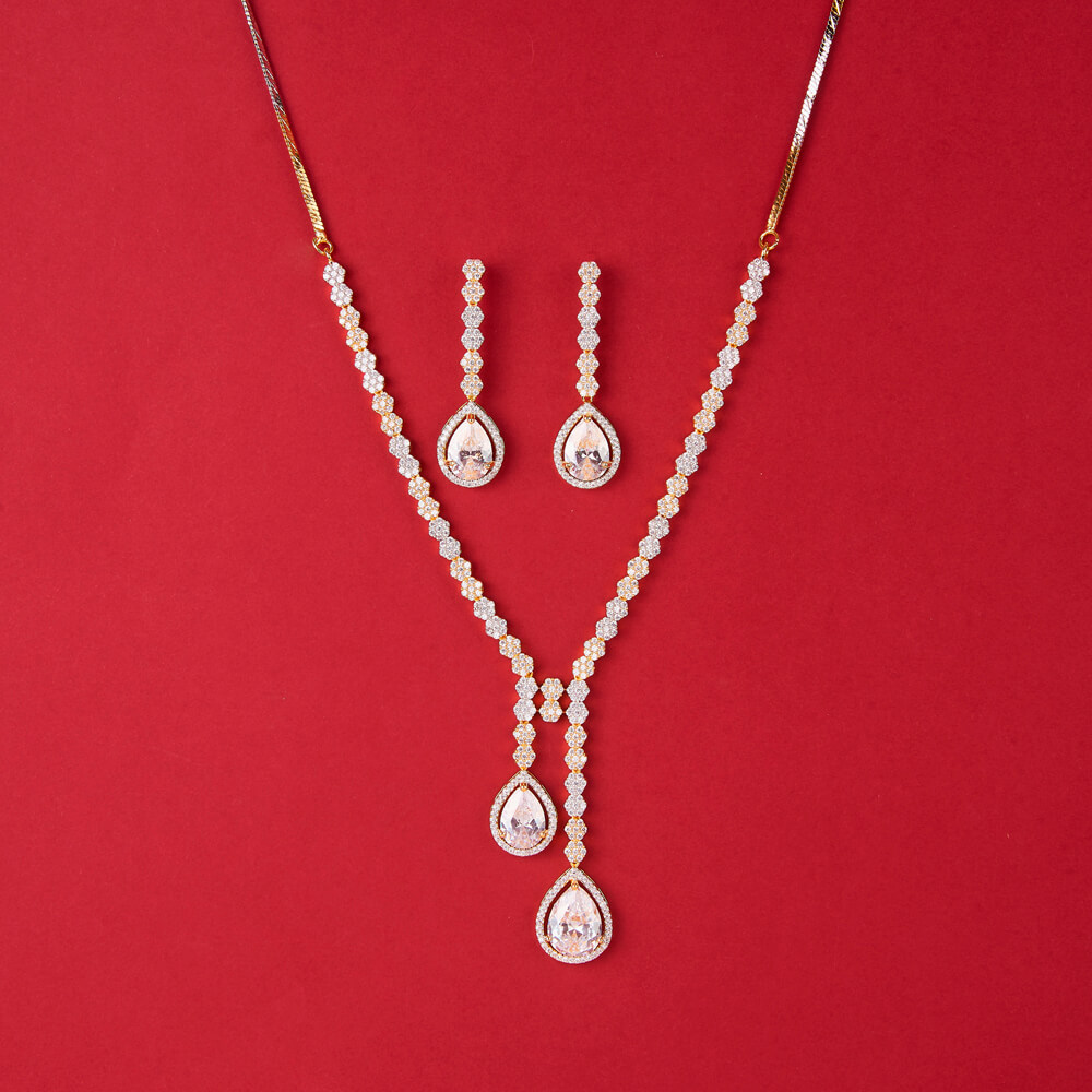 Kanhai Jewels offers an exclusive collection of finest quality crafted Fashion Jewellery in various colors. We make sure that our collection of Cz Classic Necklace With 2 Tone Plating are beautiful, elegent & will surely galvanize you, because our products are unique, comfortable, fashion forward & very popular for the rich look. Base Metal of our product is Alloy, i.e Mixing of Copper & Brass. We pack all the products using quality packaging material to ensure safe and secure transportation.