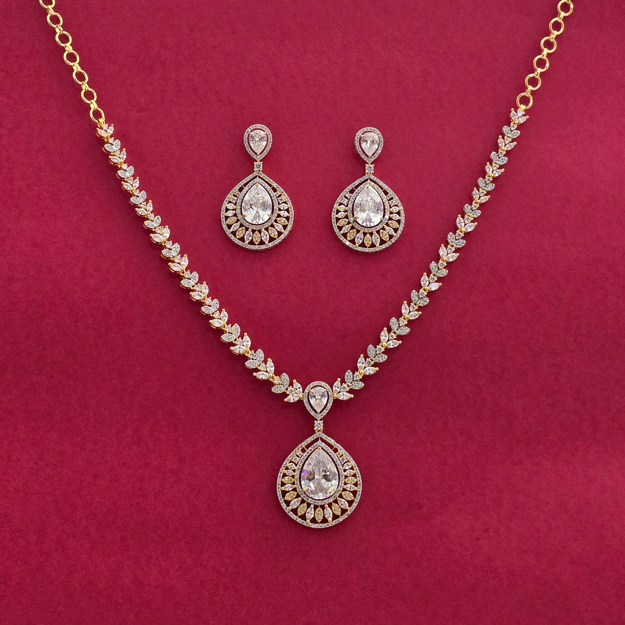 Kanhai Jewels offers an exclusive collection of finest quality crafted Fashion Jewellery in various colors. We make sure that our collection of Cz Classic Necklace With 2 Tone Plating are beautiful, elegent & will surely galvanize you, because our products are unique, comfortable, fashion forward & very popular for the rich look. Base Metal of our product is Alloy, i.e Mixing of Copper & Brass. We pack all the products using quality packaging material to ensure safe and secure transportation.