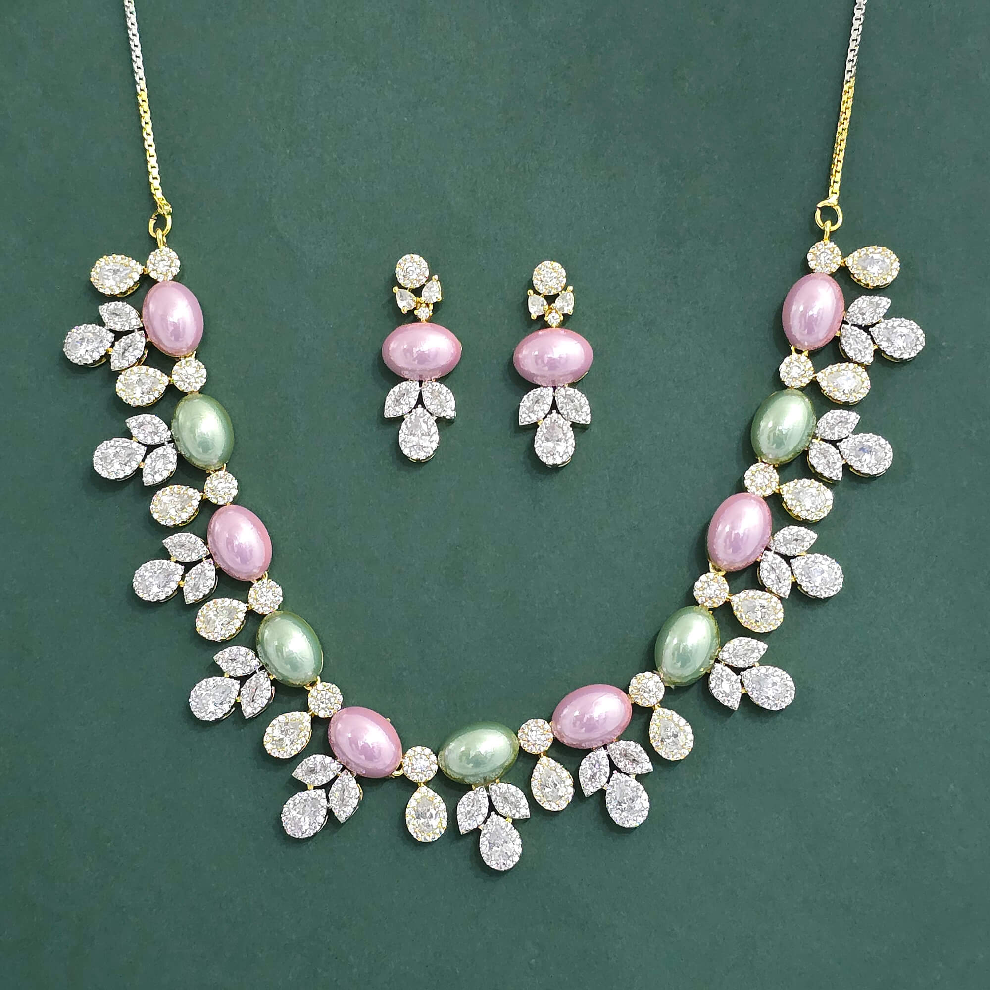 Kanhai Jewels offers an exclusive collection of finest quality crafted Fashion Jewellery in various colors. We make sure that our collection of Cz Classic Necklace With 2 Tone Plating are beautiful, elegent & will surely galvanize you, because our products are unique, comfortable, fashion forward & very popular for the rich look. Base Metal of our product is Alloy, i.e Mixing of Copper & Brass. We pack all the products using quality packaging material to ensure safe and secure transportation.