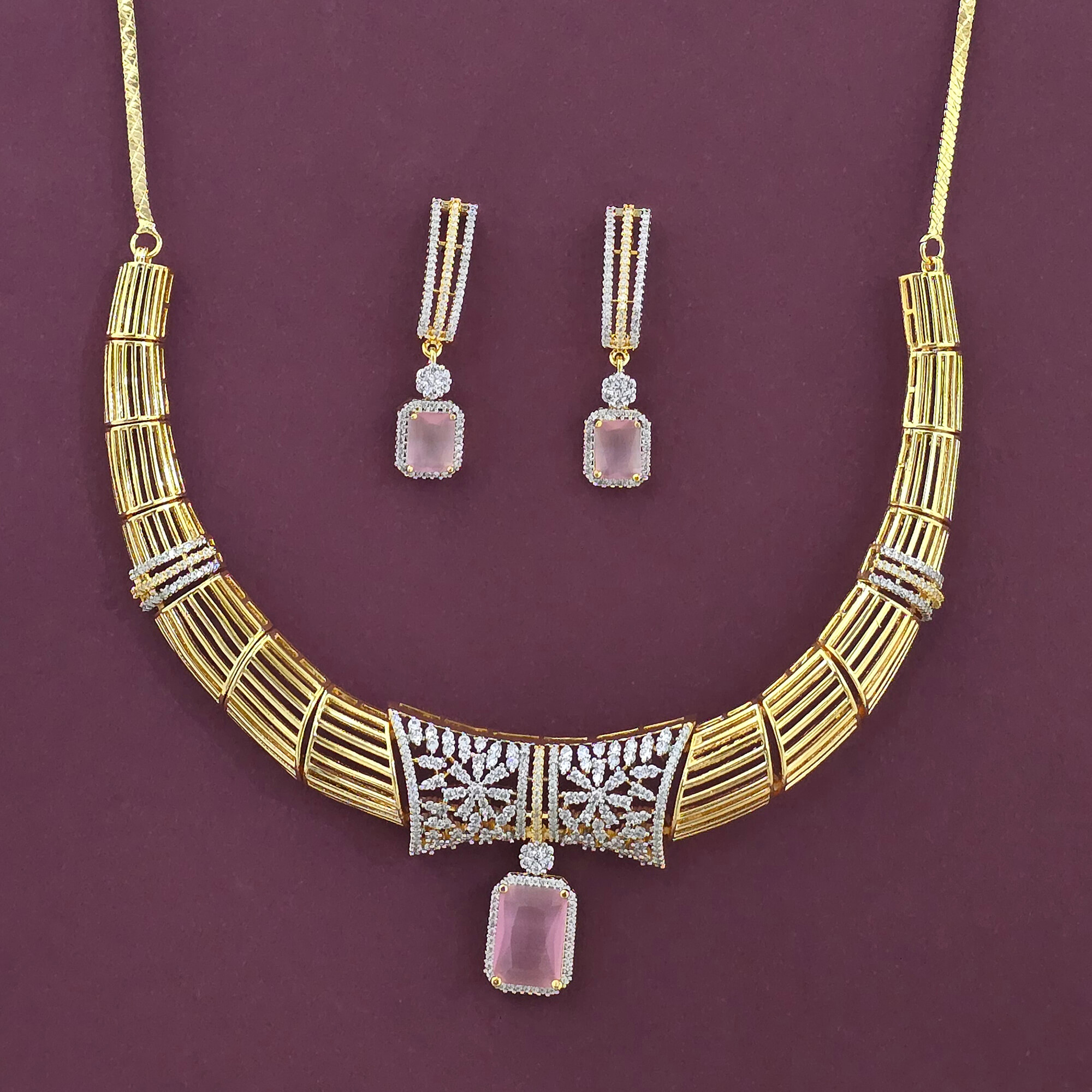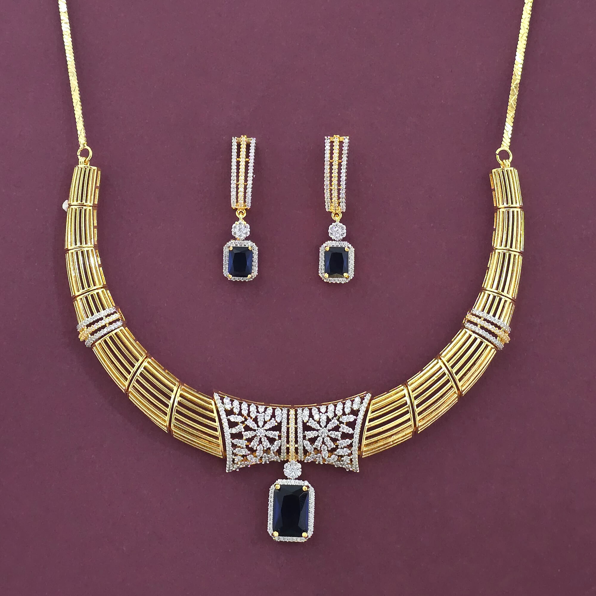 Kanhai Jewels offers an exclusive collection of finest quality crafted Fashion Jewellery in various colors. We make sure that our collection of Cz Classic Necklace With 2 Tone Plating are beautiful, elegent & will surely galvanize you, because our products are unique, comfortable, fashion forward & very popular for the rich look. Base Metal of our product is Alloy, i.e Mixing of Copper & Brass. We pack all the products using quality packaging material to ensure safe and secure transportation.