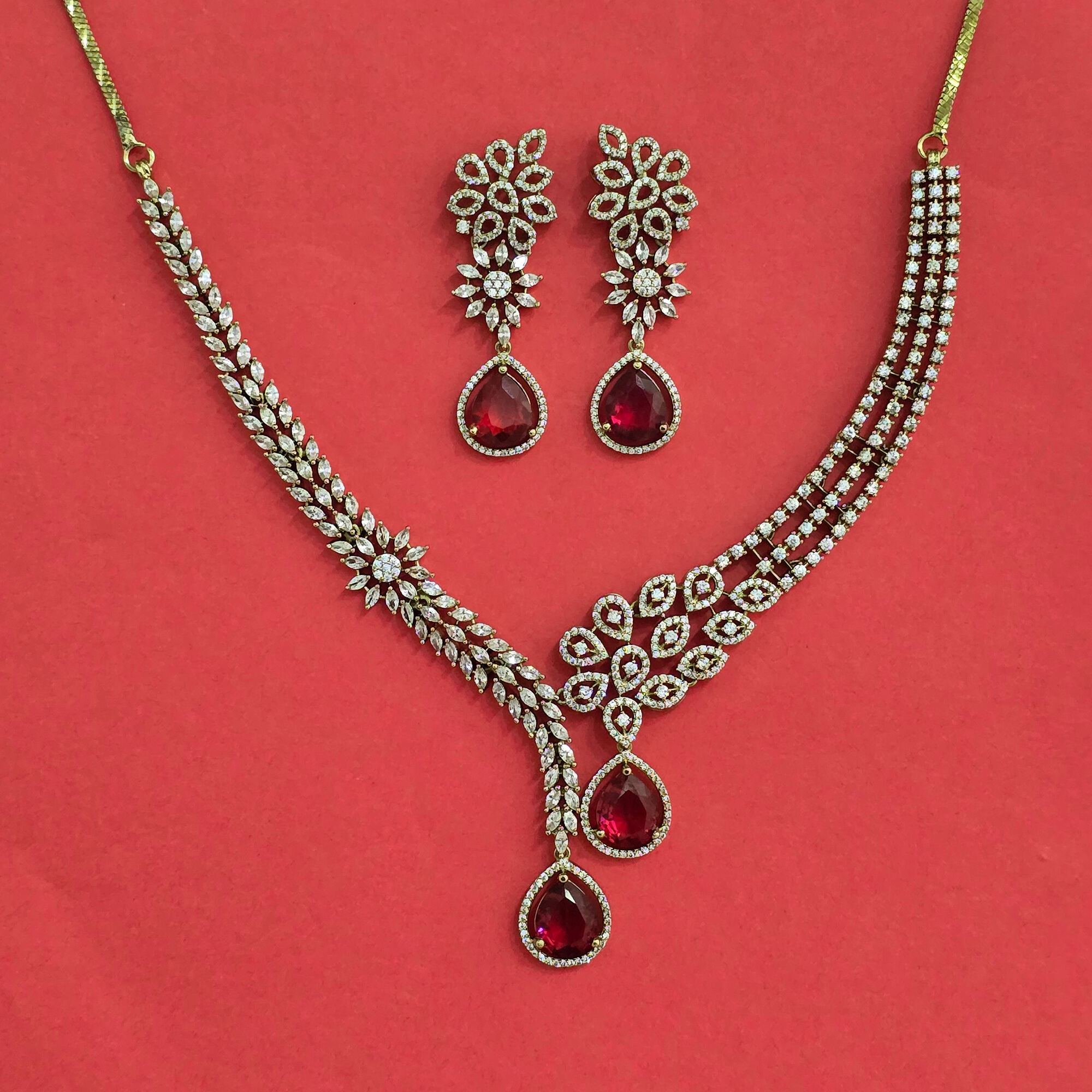 Home / American Diamond Necklace / cz classic necklace with mehndi plating