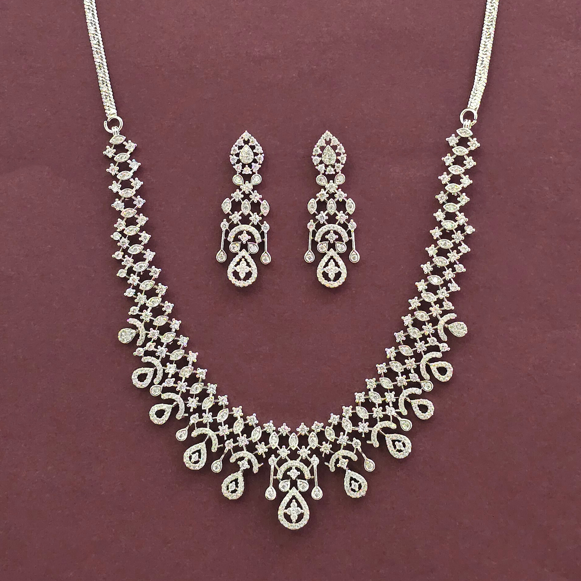 Home / American Diamond Necklace / cz classic necklace with rhodium 2 tone mehndi plating