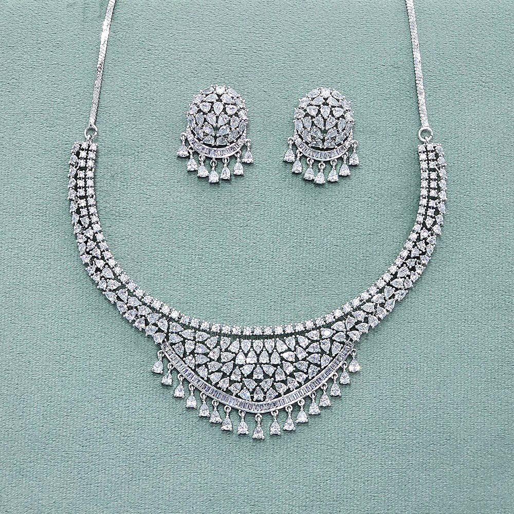 Kanhai Jewels offers an exclusive collection of finest quality crafted Fashion Jewellery in various colors. We make sure that our collection of Cz Classic Necklace With Rhodium 2 Tone Plating are beautiful, elegent & will surely galvanize you, because our products are unique, comfortable, fashion forward & very popular for the rich look. Base Metal of our product is Alloy, i.e Mixing of Copper & Brass. We pack all the products using quality packaging material to ensure safe and secure transportation.