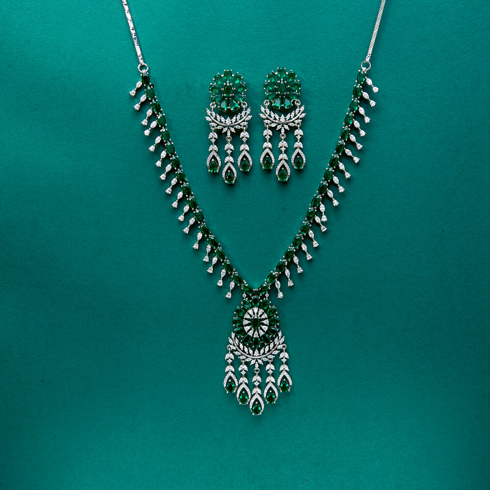 Home / American Diamond Necklace / cz classic necklace with rhodium plating