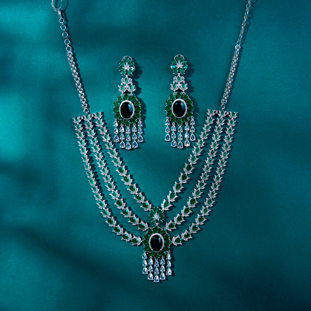Kanhai Jewels Offers An Exclusive Collection Of Finest Quality Crafted Fashion Jewellery In Various Colors. We Make Sure That Our Collection Of Cz Classic Necklace With Rhodium Plating Are Beautiful, Elegent & Will Surely Galvanize You, Because Our Products Are Unique, Comfortable, Fashion Forward & Very Popular For The Rich Look. Base Metal Of Our Product Is Alloy, I.E Mixing Of Copper & Brass. We Pack All The Products Using Quality Packaging Material To Ensure Safe And Secure Transportation.