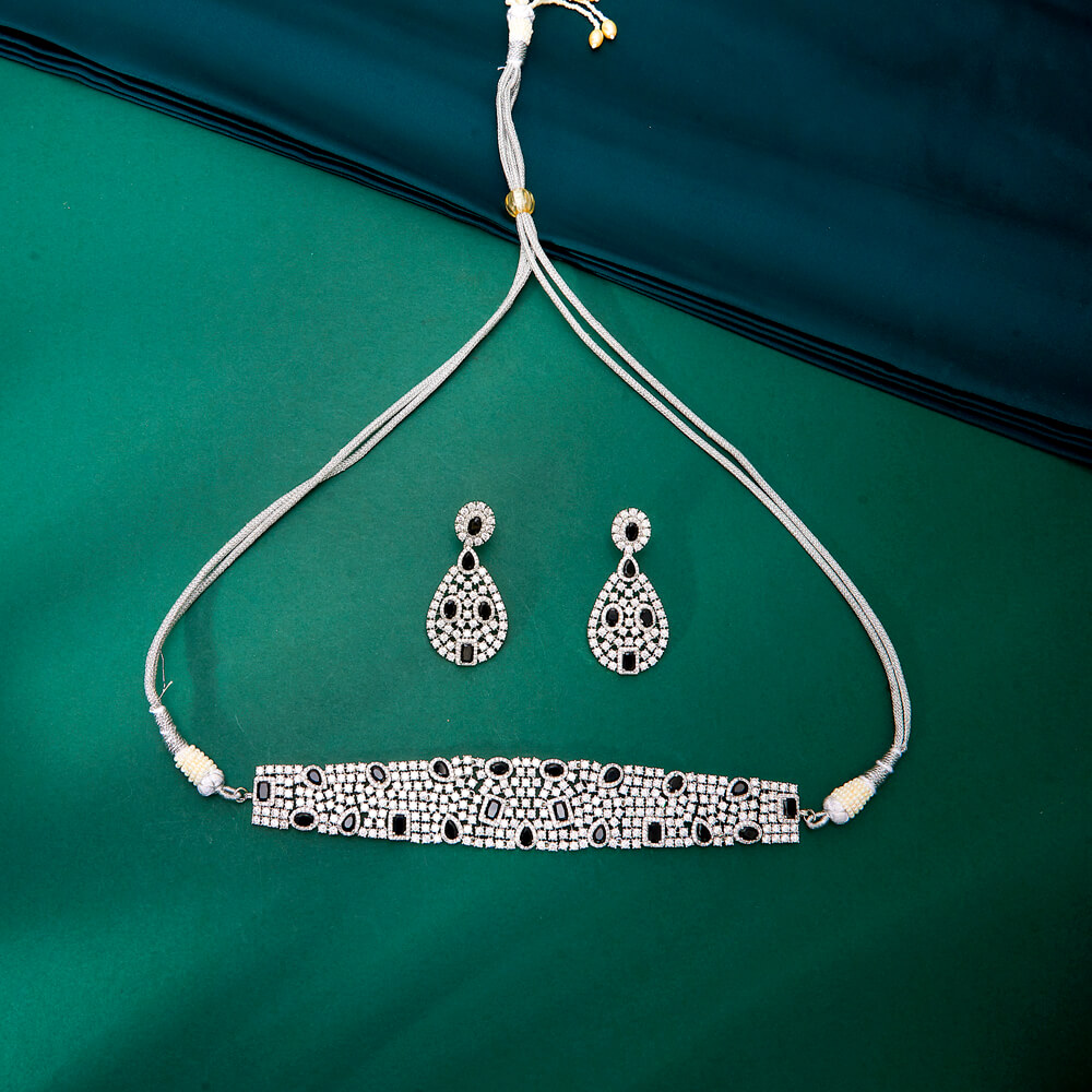 Home / American Diamond Necklace / cz classic necklace with rhodium plating