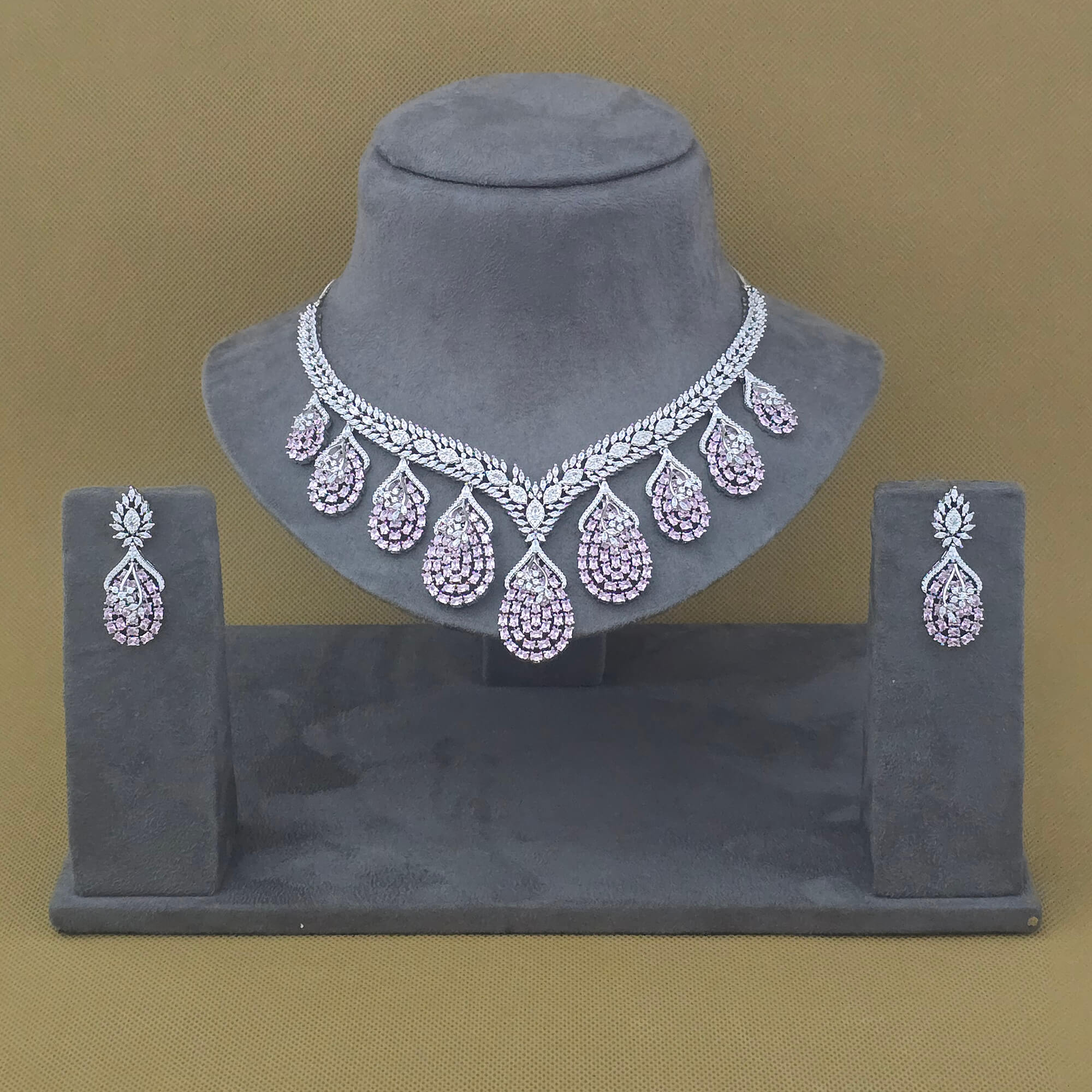 Home / American Diamond Necklace / cz classic necklace with rhodium plating
