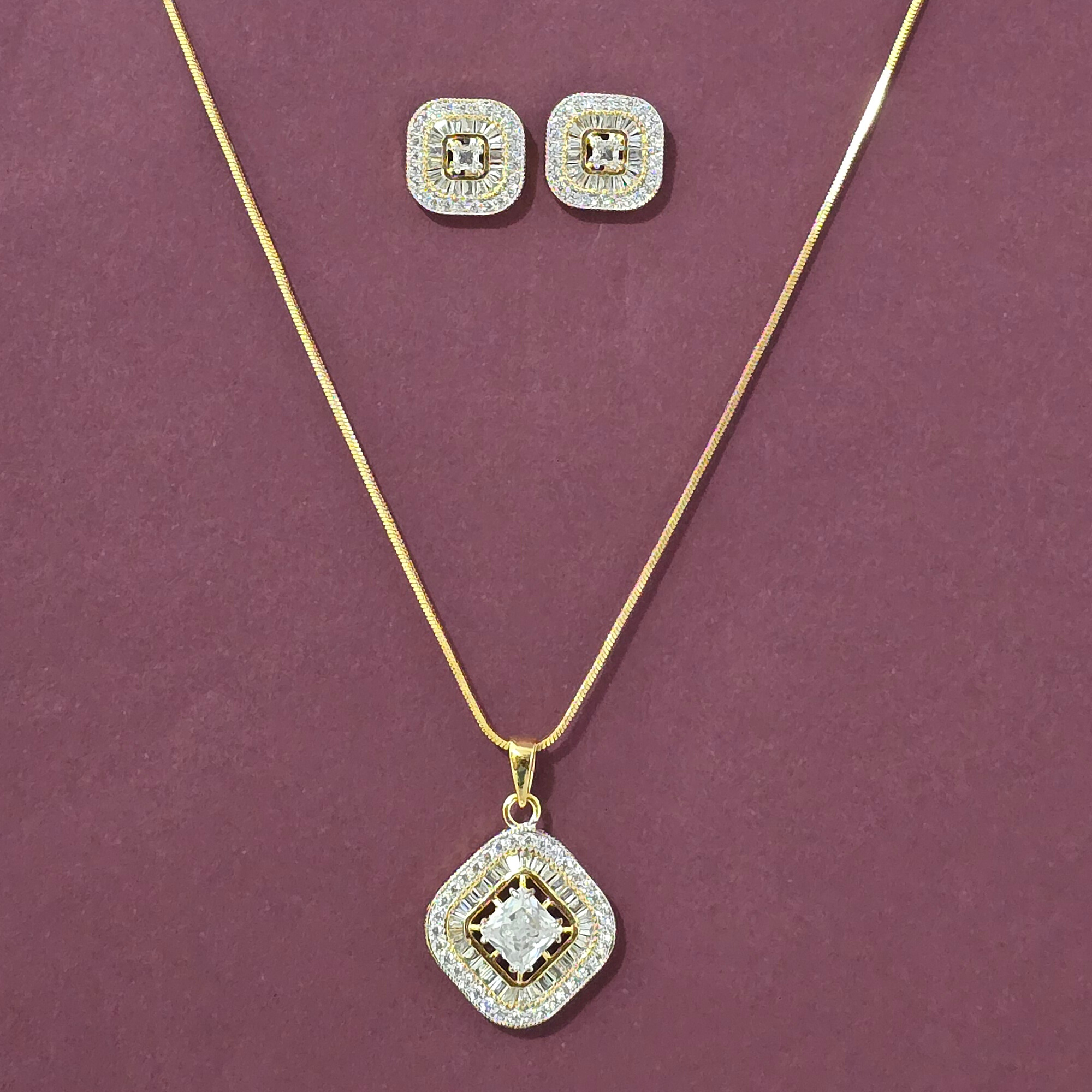 Home / American Diamond Pendant Set / cz classic pendant set with 2 tone plating
