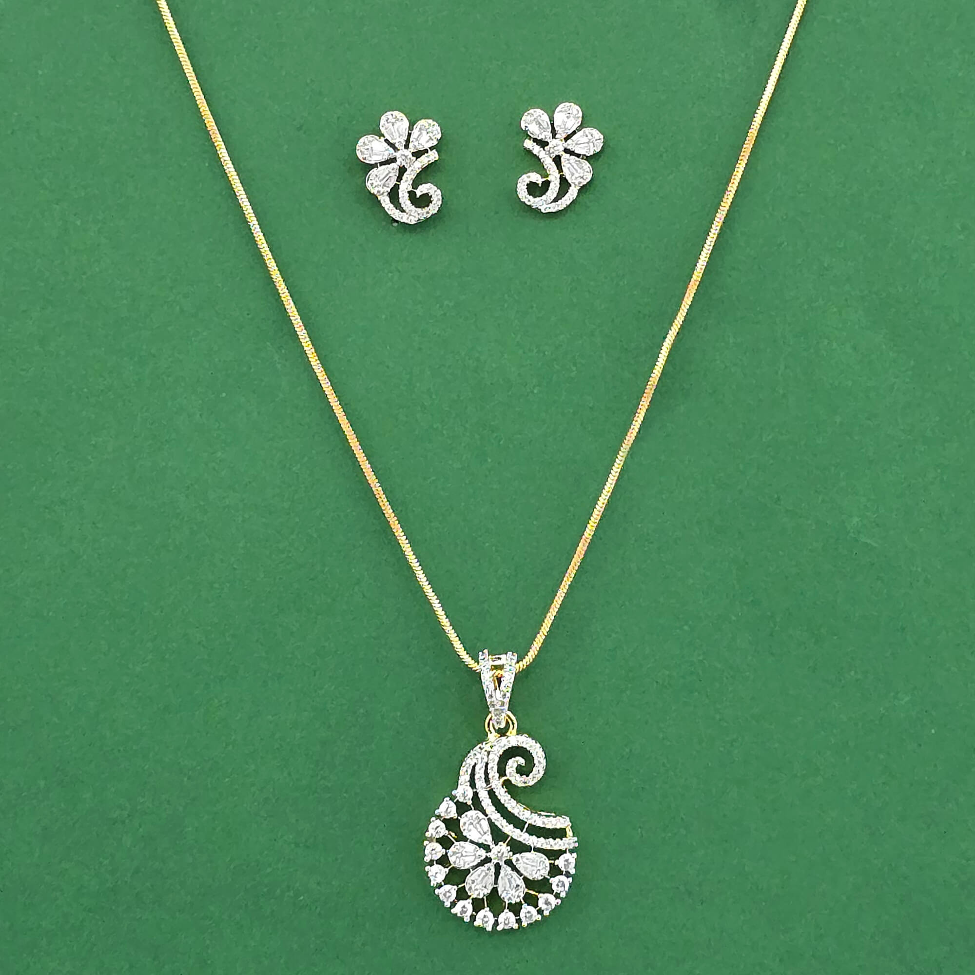 Home / American Diamond Pendant Set / cz classic pendant set with 2 tone plating