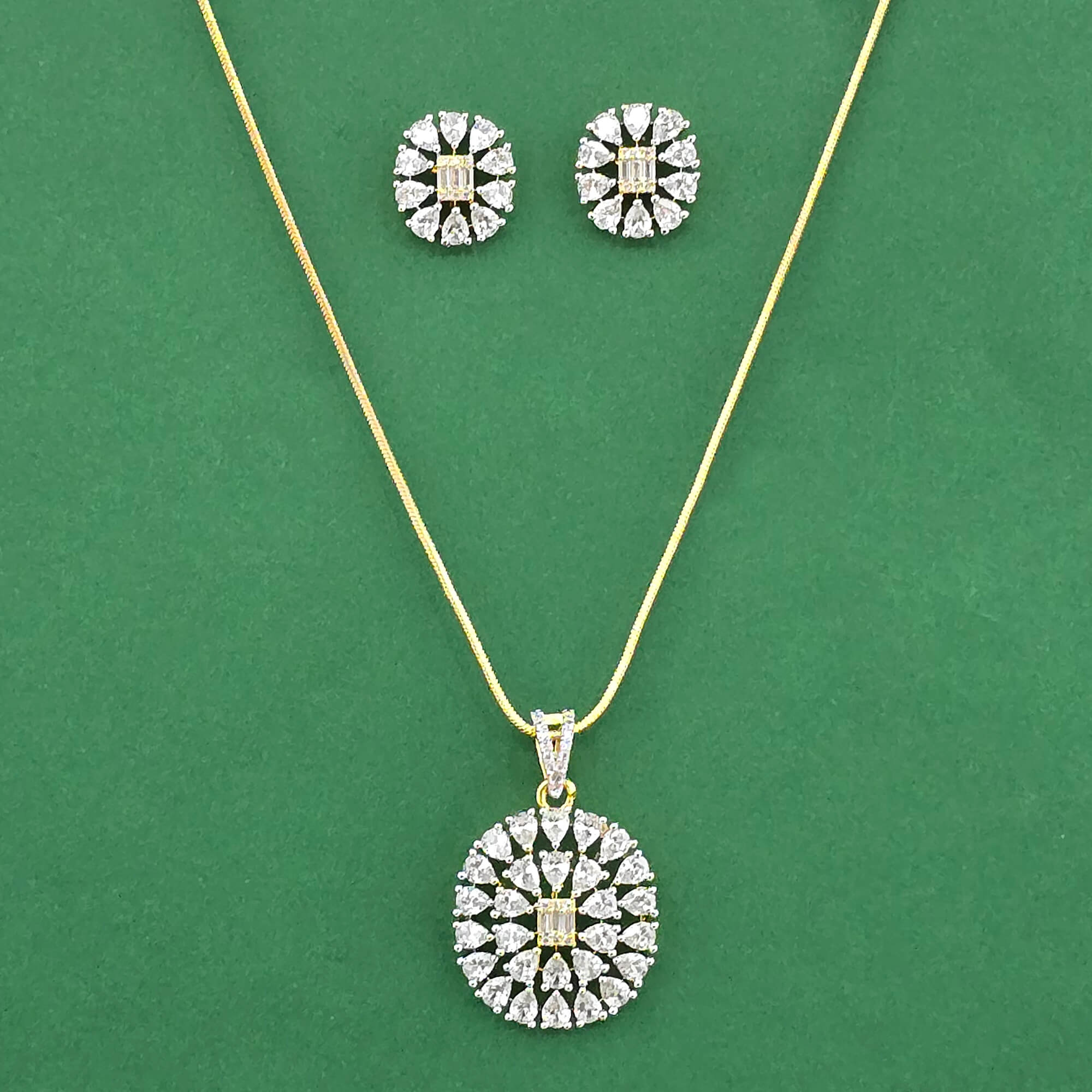 Home / American Diamond Pendant Set / cz classic pendant set with 2 tone plating