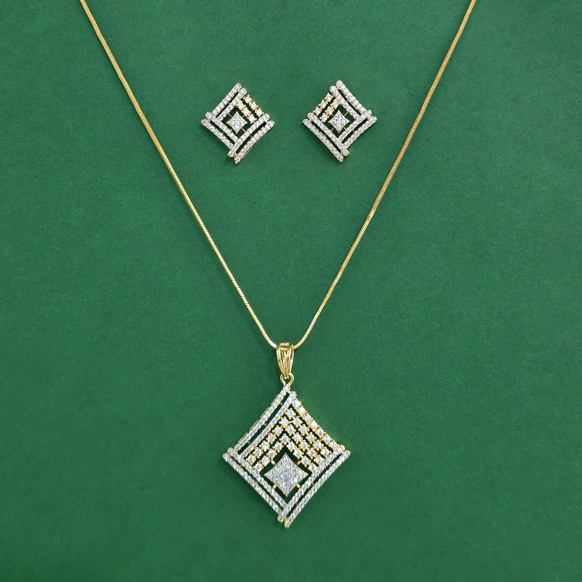 Home / American Diamond Pendant Set / cz classic pendant set with 2 tone plating