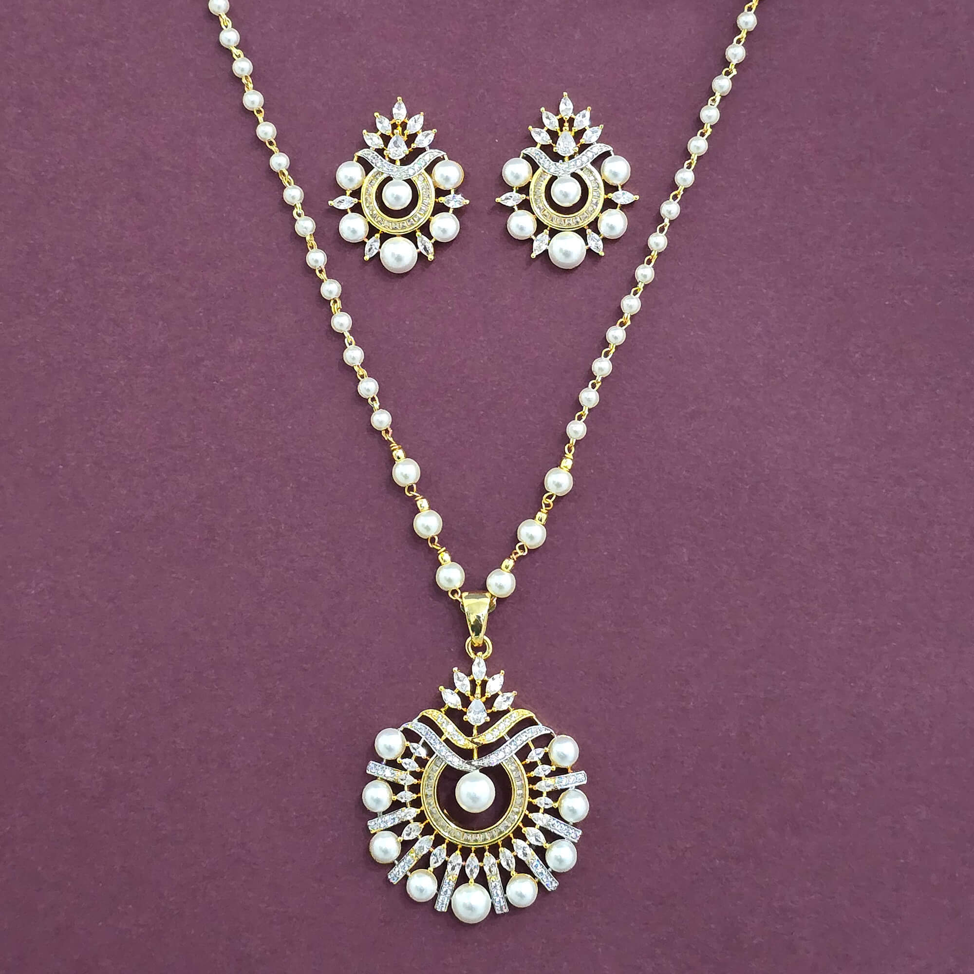 Home / American Diamond Pendant Set / cz classic pendant set with 2 tone plating