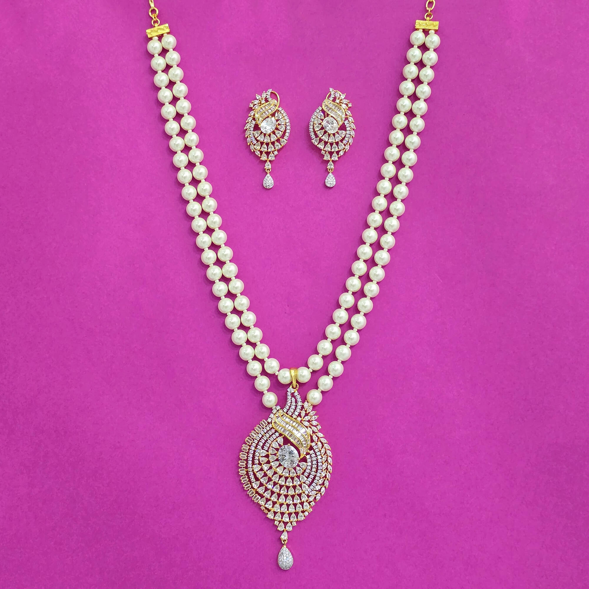 Kanhai Jewels Offers An Exclusive Collection Of Finest Quality Crafted Fashion Jewellery In Various Colors. We Make Sure That Our Collection Of Cz Classic Pendant Set With 2 Tone Plating Are Beautiful, Elegent & Will Surely Galvanize You, Because Our Products Are Unique, Comfortable, Fashion Forward & Very Popular For The Rich Look. Base Metal Of Our Product Is Alloy, I.E Mixing Of Copper & Brass. We Pack All The Products Using Quality Packaging Material To Ensure Safe And Secure Transportation.