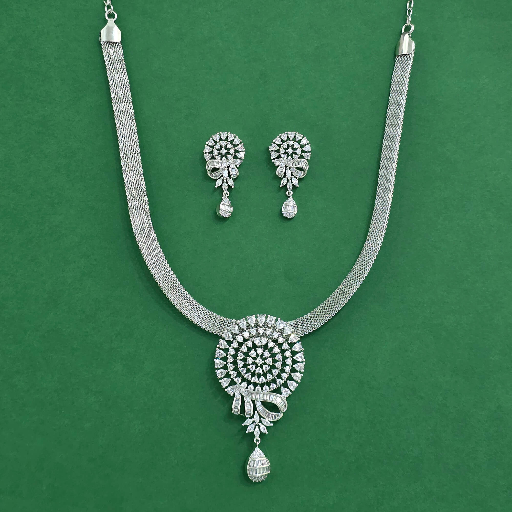 Home / American Diamond Pendant Set / cz classic pendant set with 2 tone rhodium plating