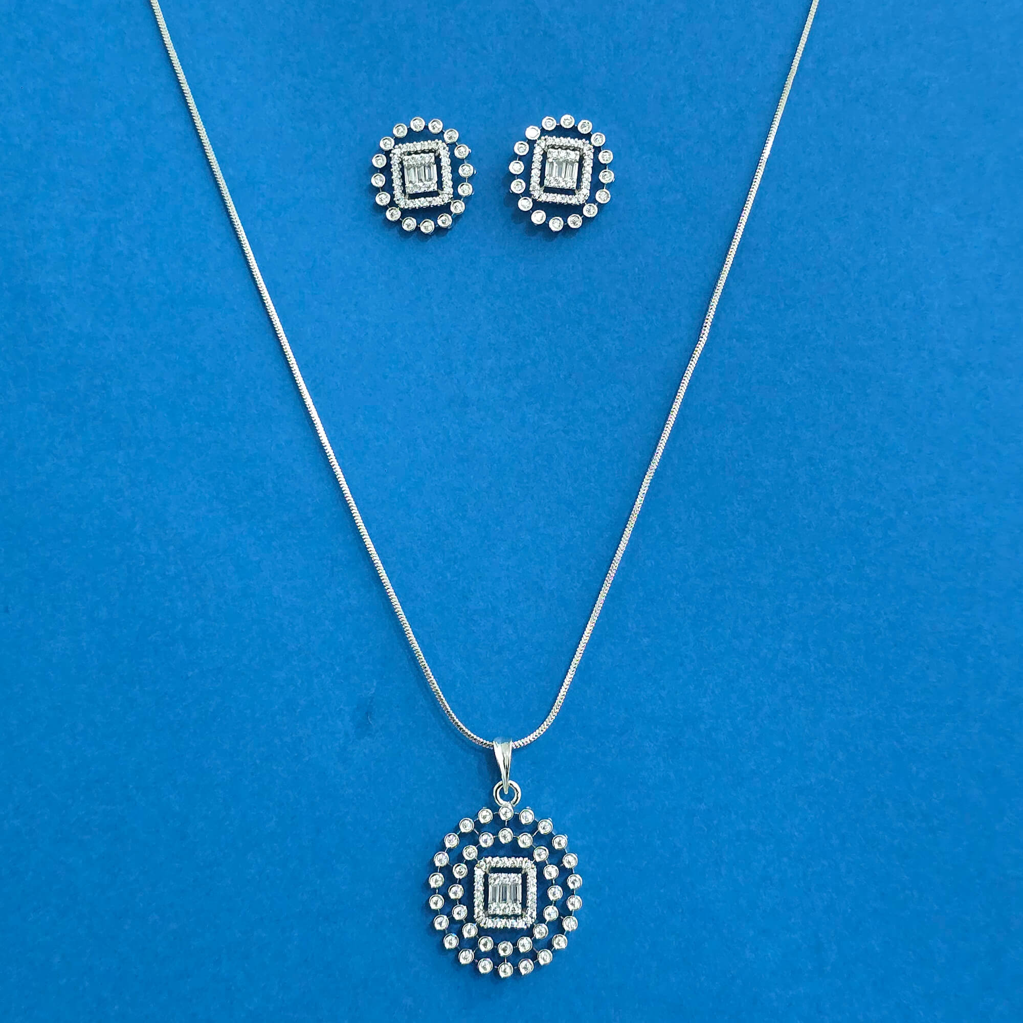 Home / American Diamond Pendant Set / cz classic pendant set with rhodium plating