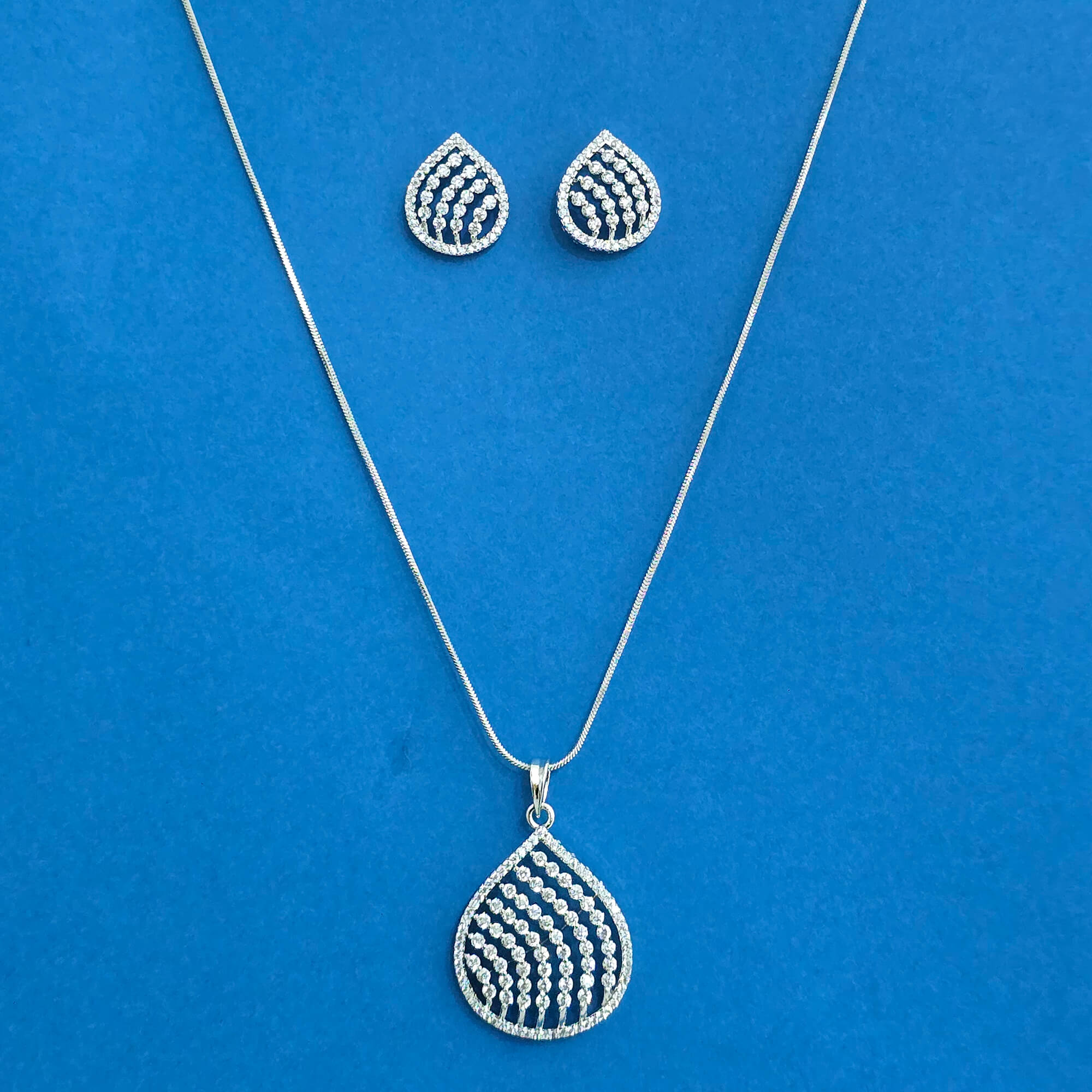 Home / American Diamond Pendant Set / cz classic pendant set with rhodium plating