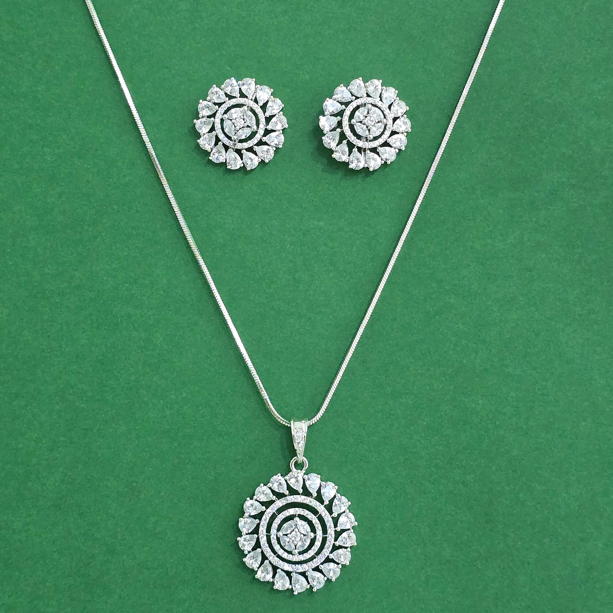 Home / American Diamond Pendant Set / cz classic pendant set with rhodium plating