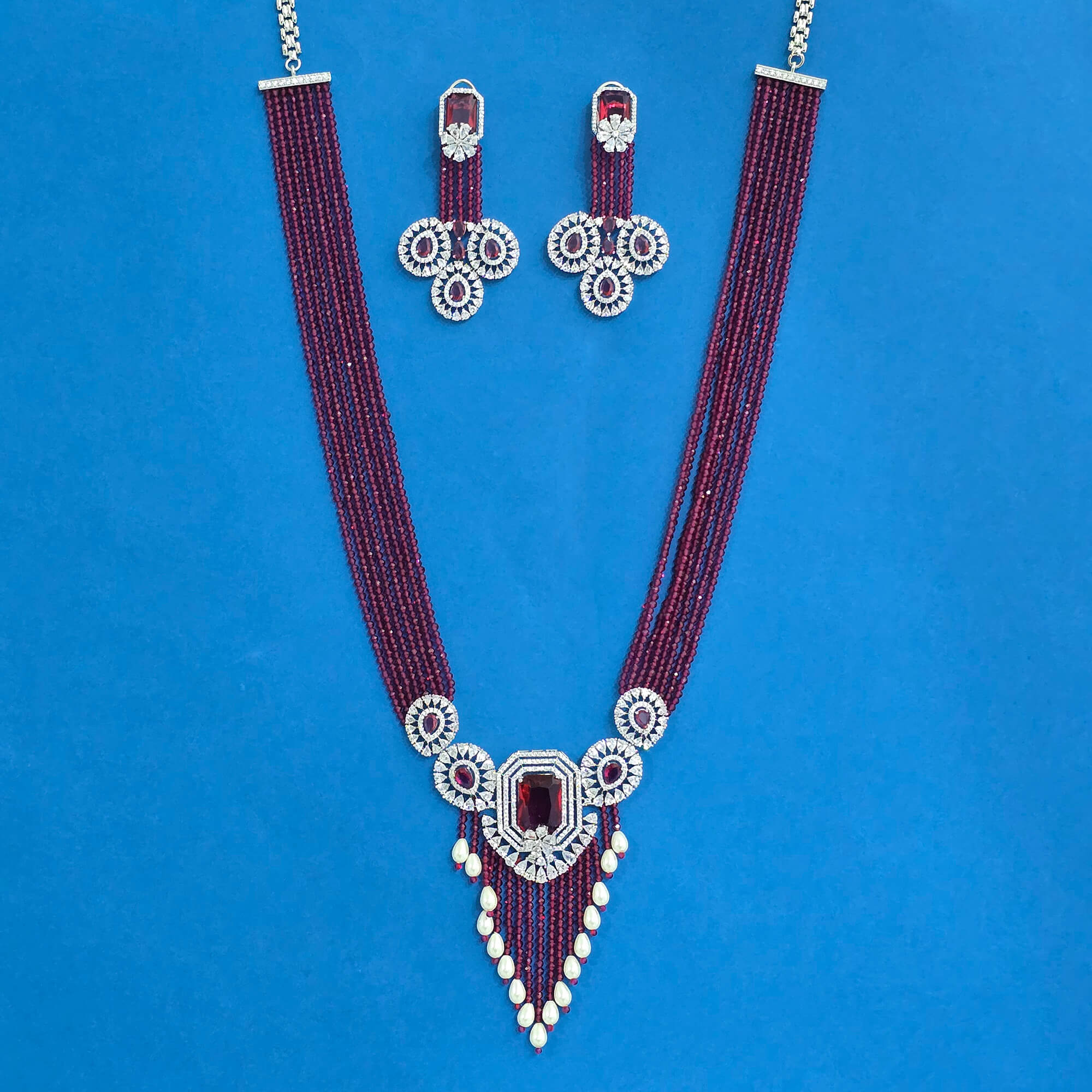 Home / American Diamond Pendant Set / cz classic pendant set with rhodium plating