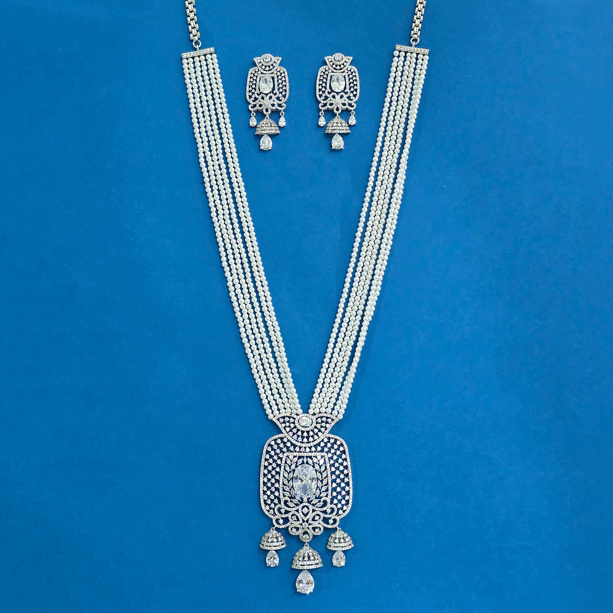 Kanhai Jewels offers an exclusive collection of finest quality crafted Fashion Jewellery in various colors. We make sure that our collection of Cz Classic Pendant Set With Rhodium Plating are beautiful, elegent & will surely galvanize you, because our products are unique, comfortable, fashion forward & very popular for the rich look. Base Metal of our product is Alloy, i.e Mixing of Copper & Brass. We pack all the products using quality packaging material to ensure safe and secure transportation.