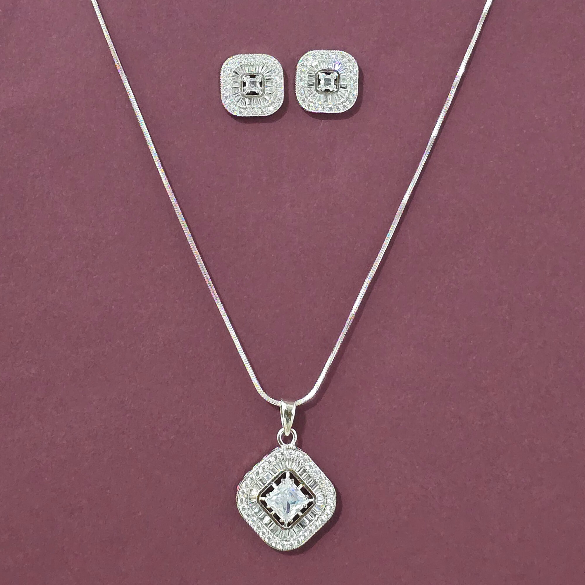 Home / American Diamond Pendant Set / cz classic pendant set with rhodium plating