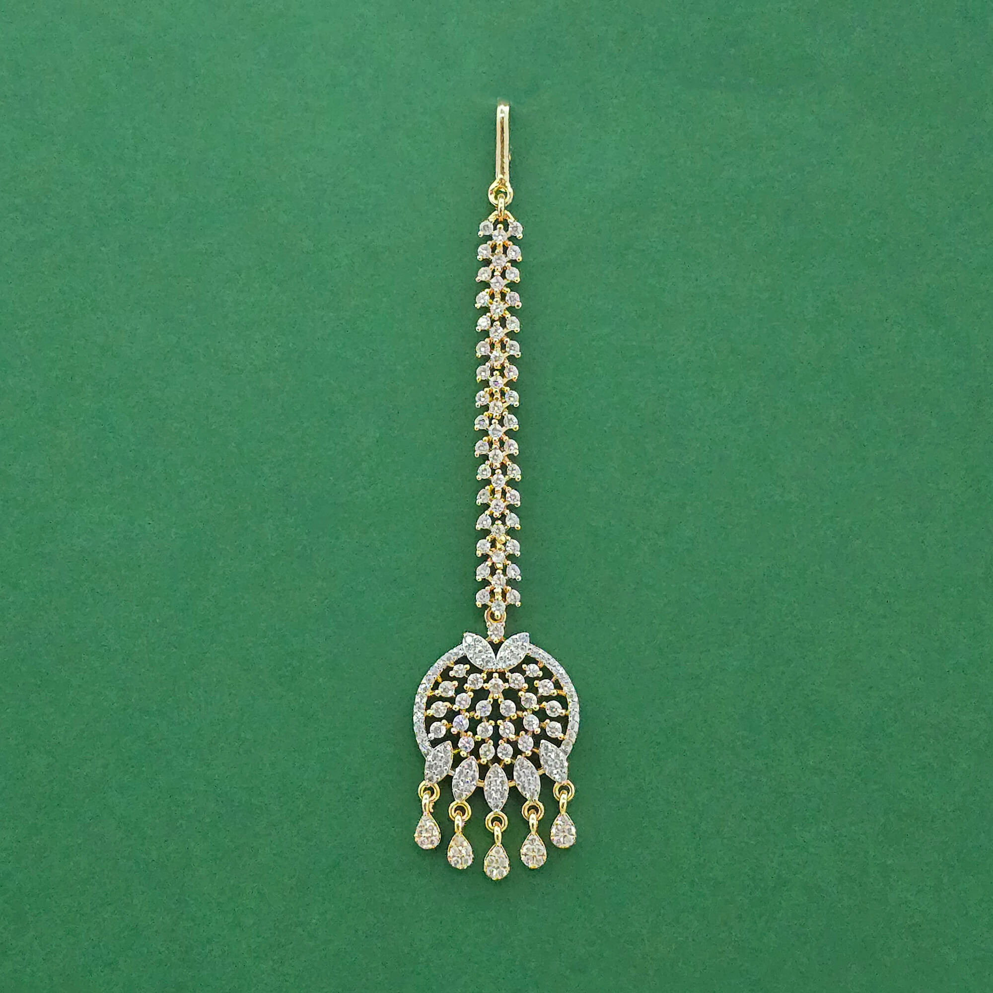 Home / American Diamond Tikka / cz classic tikka with mehndi 2 tone rhodium plating