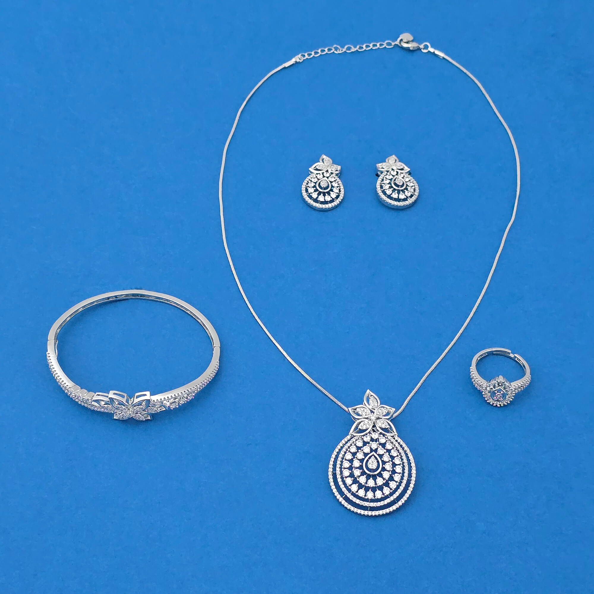 Kanhai Jewels offers an exclusive collection of finest quality crafted Fashion Jewellery in various colors. We make sure that our collection of Cz Combo Pendant Set With Rhodium Plating are beautiful, elegent & will surely galvanize you, because our products are unique, comfortable, fashion forward & very popular for the rich look. Base Metal of our product is Alloy, i.e Mixing of Copper & Brass. We pack all the products using quality packaging material to ensure safe and secure transportation.
