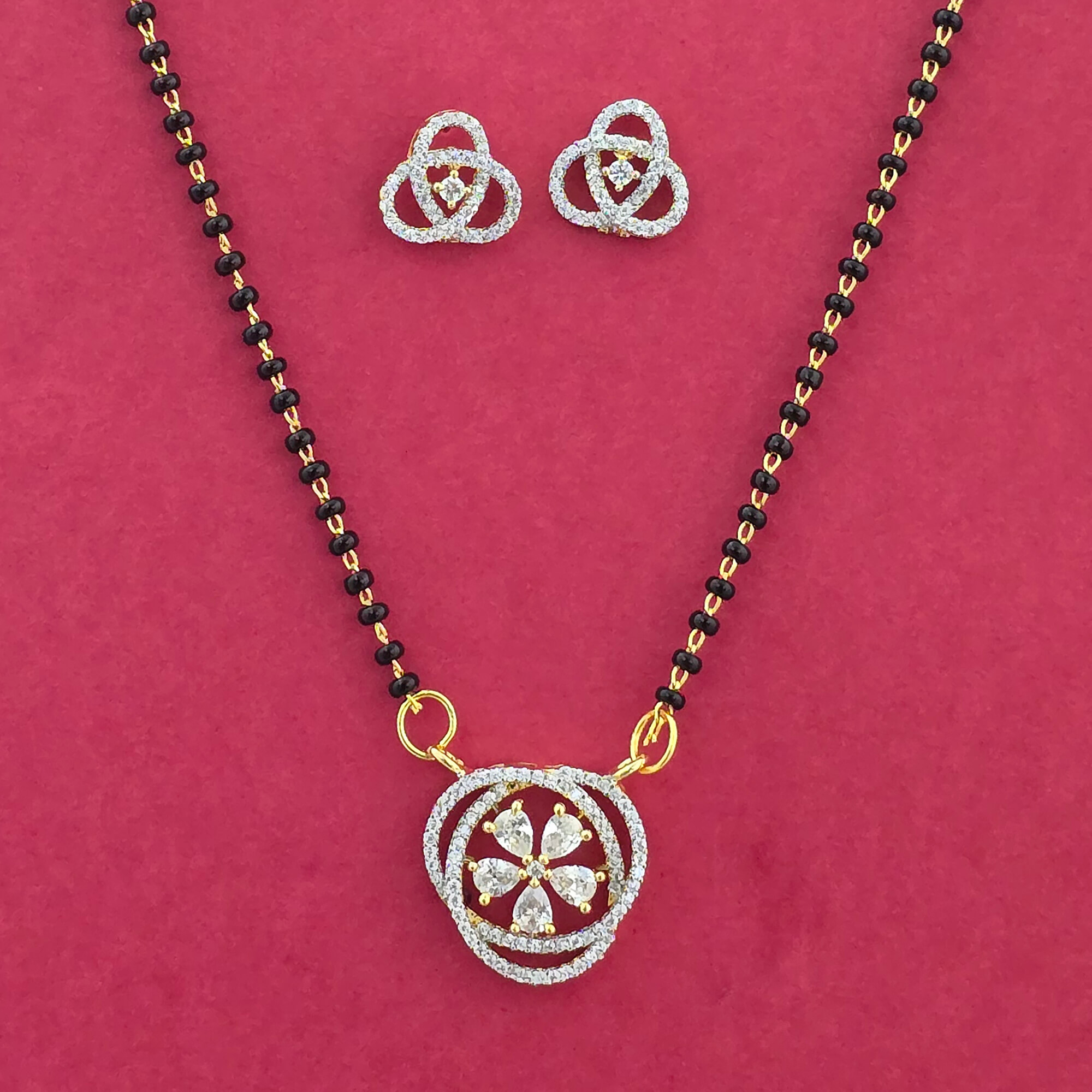 440851 Cz Delicate Mangalsutra With 2 Tone Rhodium Plating