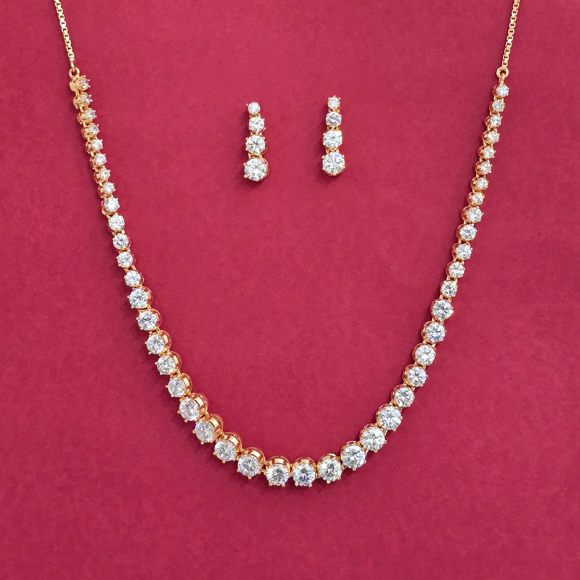 Kanhai Jewels offers an exclusive collection of finest quality crafted Fashion Jewellery in various colors. We make sure that our collection of Cz Delicate Necklace With Carat Plating are beautiful, elegent & will surely galvanize you, because our products are unique, comfortable, fashion forward & very popular for the rich look. Base Metal of our product is Alloy, i.e Mixing of Copper & Brass. We pack all the products using quality packaging material to ensure safe and secure transportation.