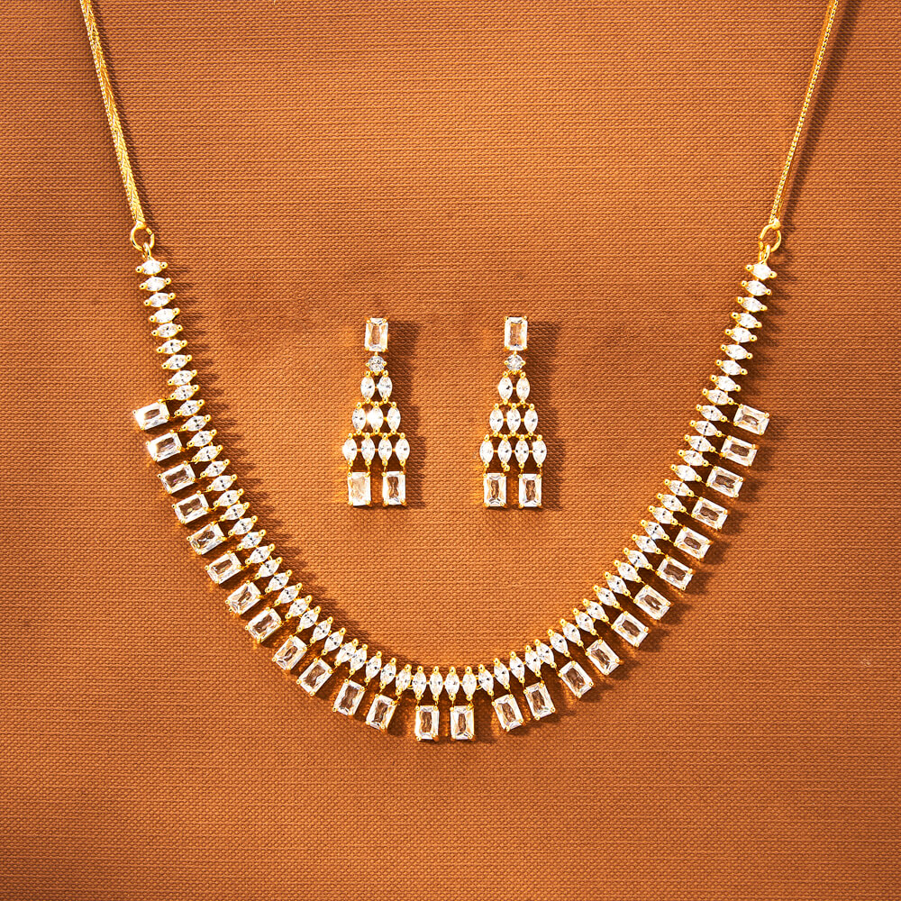 Kanhai Jewels offers an exclusive collection of finest quality crafted Fashion Jewellery in various colors. We make sure that our collection of Cz Delicate Necklace With Gold Plating are beautiful, elegent & will surely galvanize you, because our products are unique, comfortable, fashion forward & very popular for the rich look. Base Metal of our product is Alloy, i.e Mixing of Copper & Brass. We pack all the products using quality packaging material to ensure safe and secure transportation.