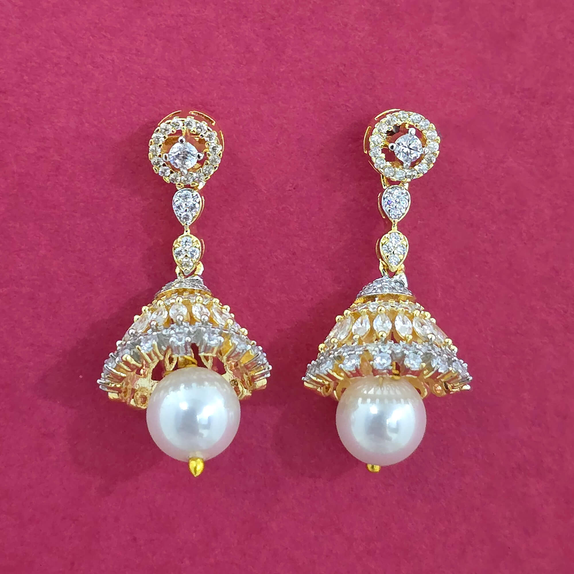 440919 Cz Jhumki With Mehndi 2 Tone Rhodium Plating