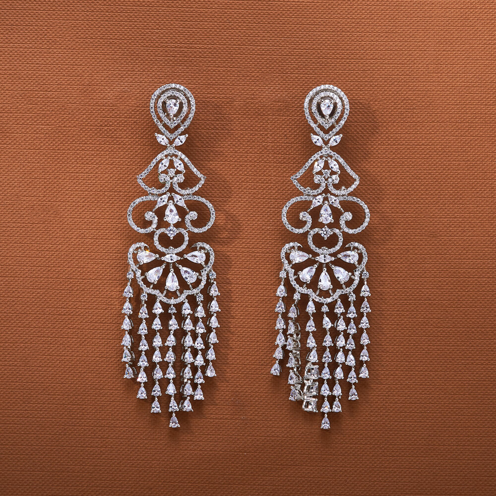 Home / American Diamond Earring / cz long earring with rhodium 2 tone plating