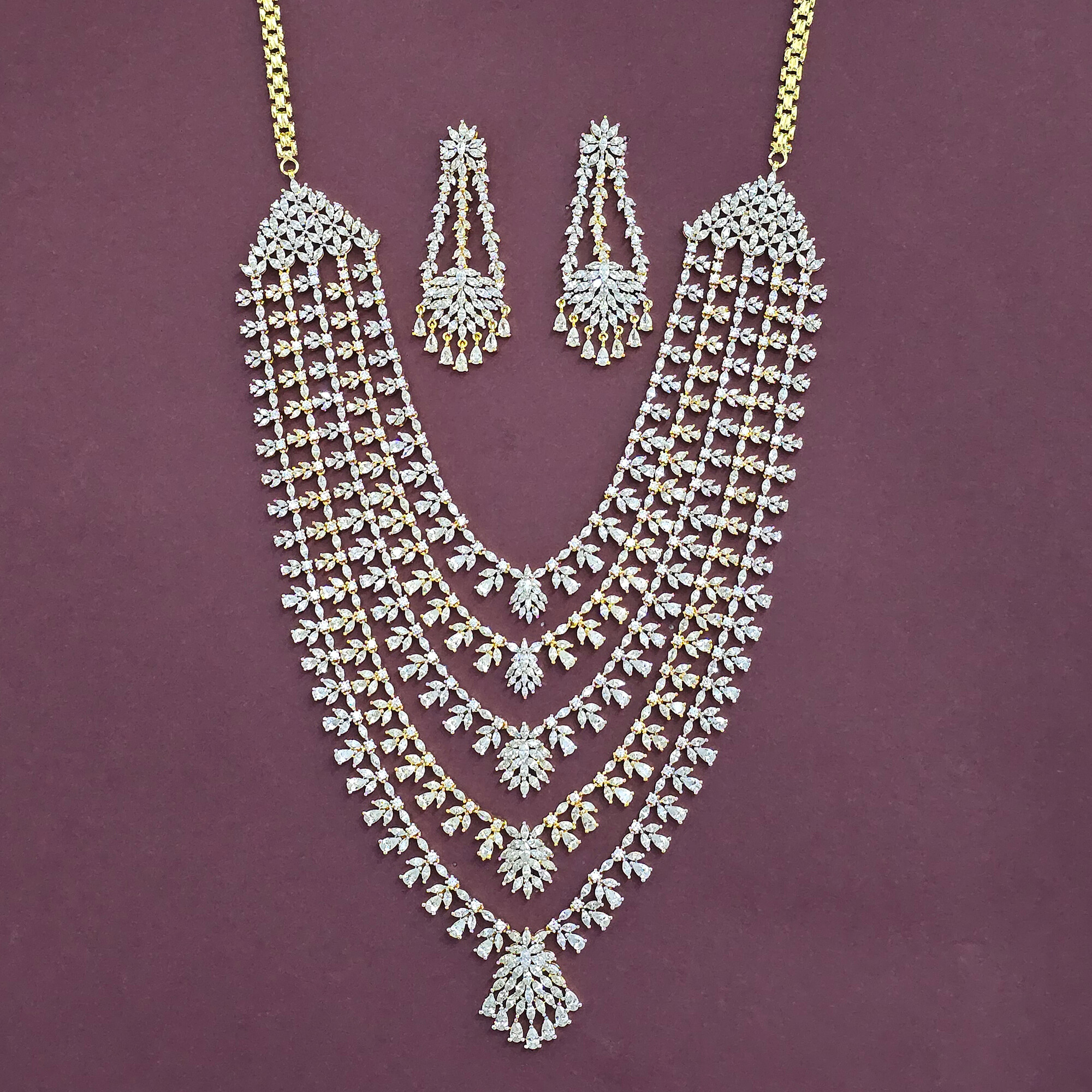 Kanhai Jewels offers an exclusive collection of finest quality crafted Fashion Jewellery in various colors. We make sure that our collection of Cz Long Necklace Set With 2 Tone Rhodium Plating are beautiful, elegent & will surely galvanize you, because our products are unique, comfortable, fashion forward & very popular for the rich look. Base Metal of our product is Alloy, i.e Mixing of Copper & Brass. We pack all the products using quality packaging material to ensure safe and secure transportation.
