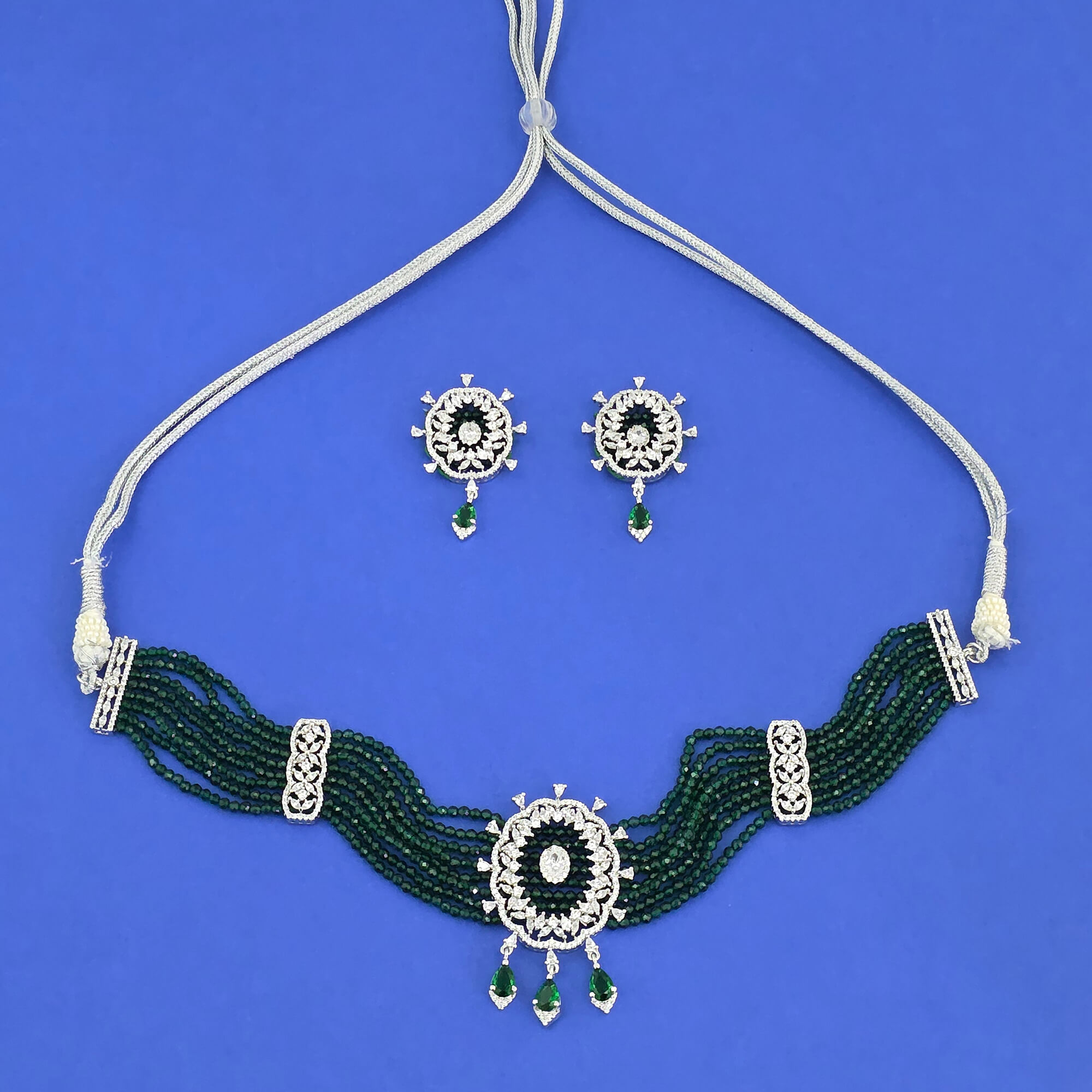 Kanhai Jewels Offers An Exclusive Collection Of Finest Quality Crafted Fashion Jewellery In Various Colors. We Make Sure That Our Collection Of Cz Mala Necklace Set With Rhodium Plating Are Beautiful, Elegent & Will Surely Galvanize You, Because Our Products Are Unique, Comfortable, Fashion Forward & Very Popular For The Rich Look. Base Metal Of Our Product Is Alloy, I.E Mixing Of Copper & Brass. We Pack All The Products Using Quality Packaging Material To Ensure Safe And Secure Transportation.