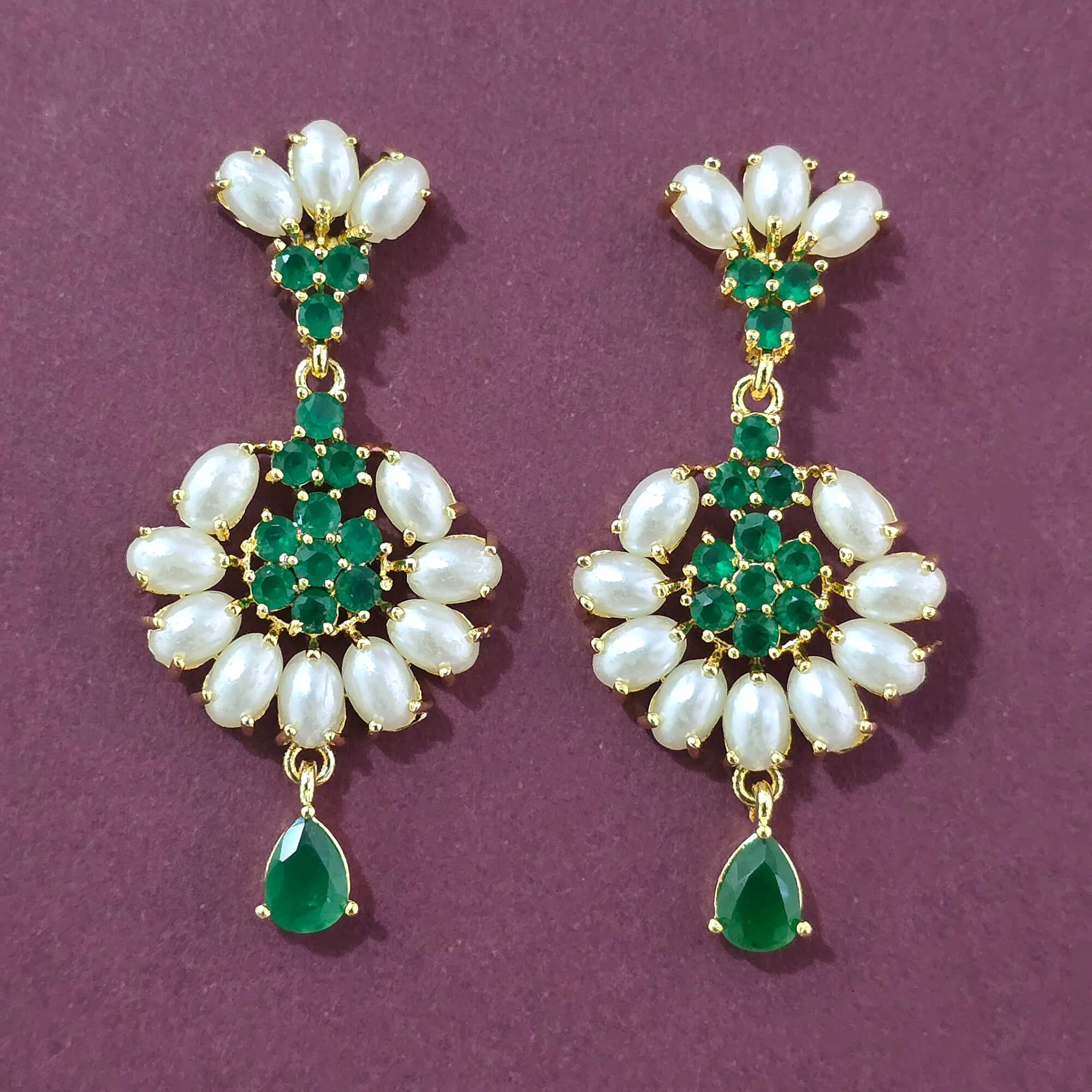 Kanhai Jewels offers an exclusive collection of finest quality crafted Fashion Jewellery in various colors. We make sure that our collection of Cz Moti Earring With Gold Plating are beautiful, elegent & will surely galvanize you, because our products are unique, comfortable, fashion forward & very popular for the rich look. Base Metal of our product is Alloy, i.e Mixing of Copper & Brass. We pack all the products using quality packaging material to ensure safe and secure transportation.