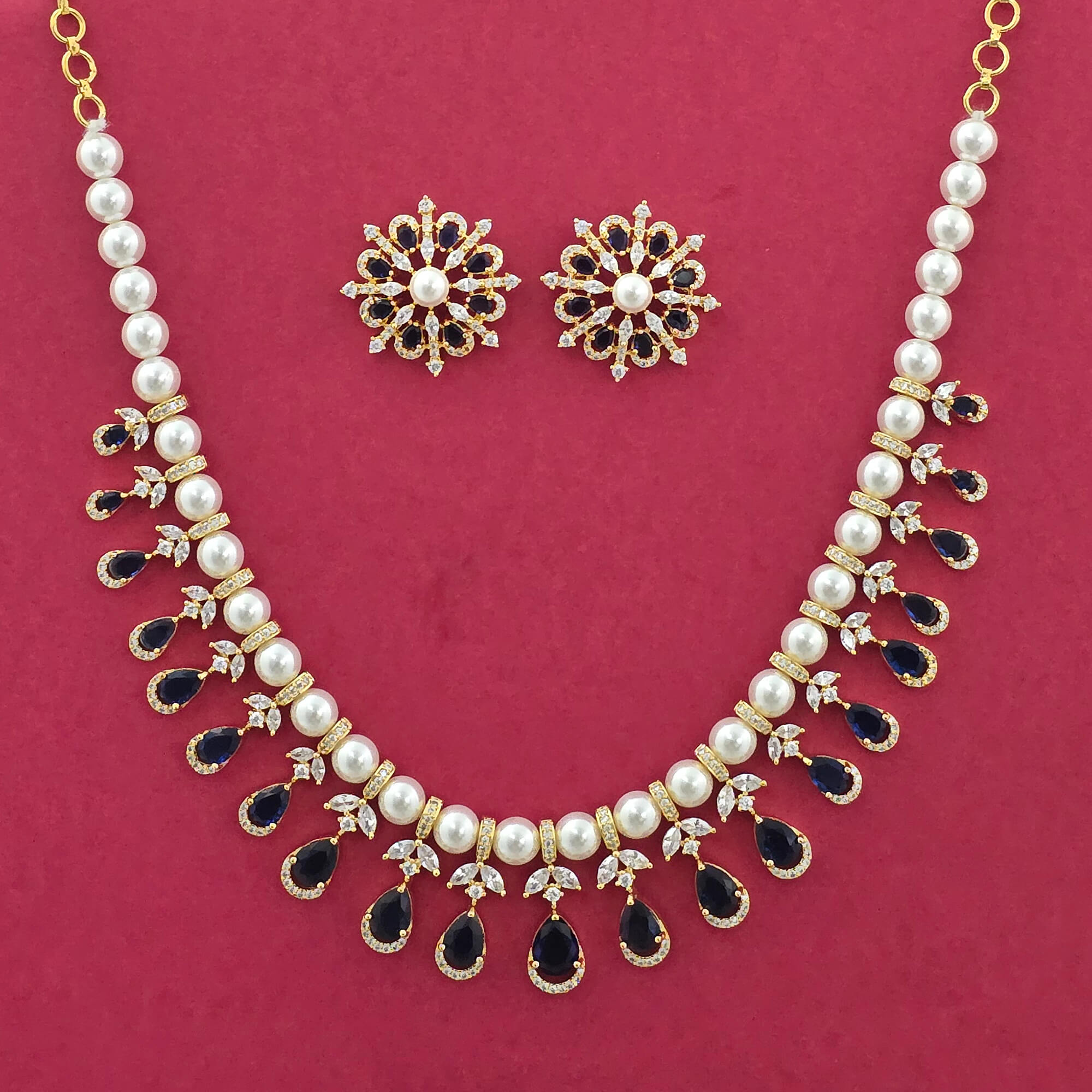 Home / American Diamond Necklace / cz moti necklace set with gold plating