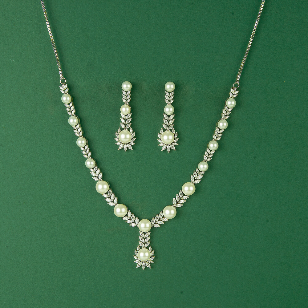Home / American Diamond Necklace / cz moti necklace with 2 tone rhodium plating