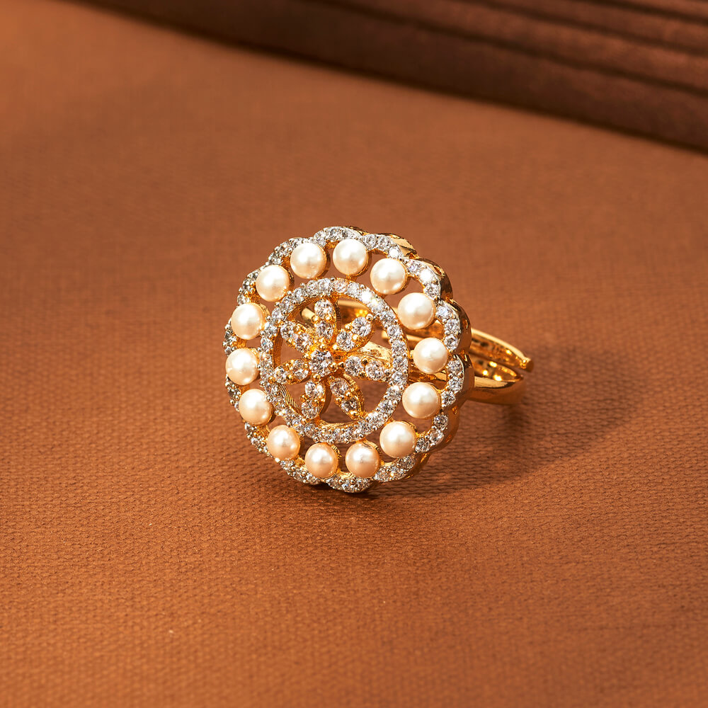 Home / American Diamond Finger Ring / cz moti ring with rhodium 2 tone plating