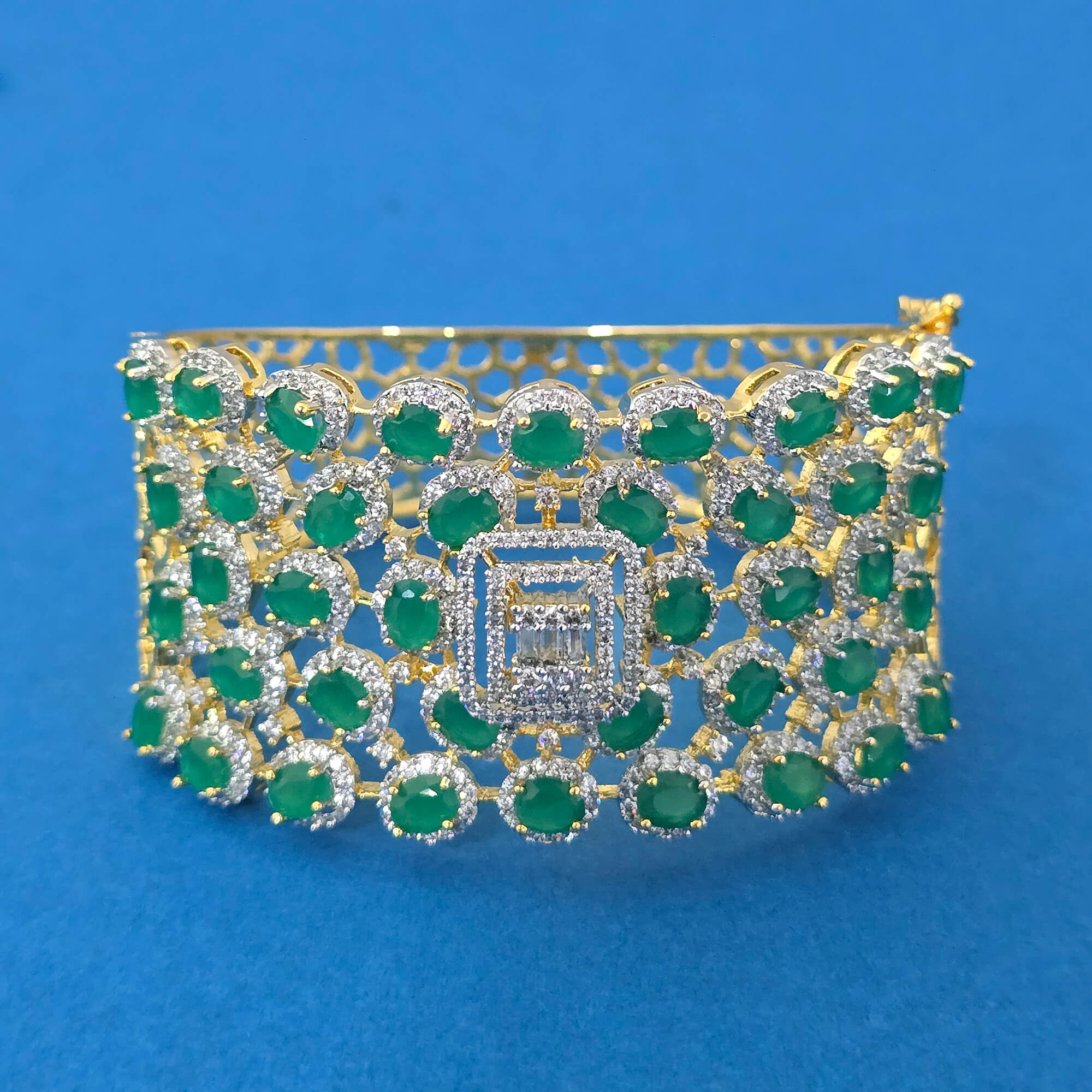 Kanhai Jewels offers an exclusive collection of finest quality crafted Fashion Jewellery in various colors. We make sure that our collection of Cz Openable Kada With 2 Tone Plating are beautiful, elegent & will surely galvanize you, because our products are unique, comfortable, fashion forward & very popular for the rich look. Base Metal of our product is Alloy, i.e Mixing of Copper & Brass. We pack all the products using quality packaging material to ensure safe and secure transportation.