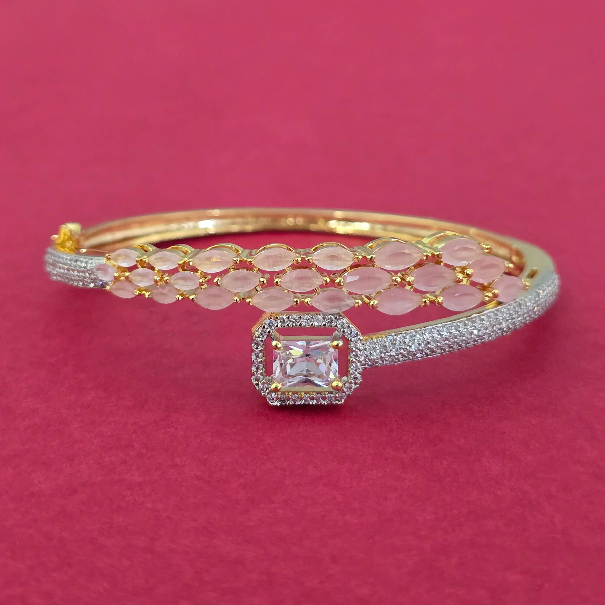 Kanhai Jewels offers an exclusive collection of finest quality crafted Fashion Jewellery in various colors. We make sure that our collection of Cz Openable Kada With 2 Tone Plating are beautiful, elegent & will surely galvanize you, because our products are unique, comfortable, fashion forward & very popular for the rich look. Base Metal of our product is Alloy, i.e Mixing of Copper & Brass. We pack all the products using quality packaging material to ensure safe and secure transportation.