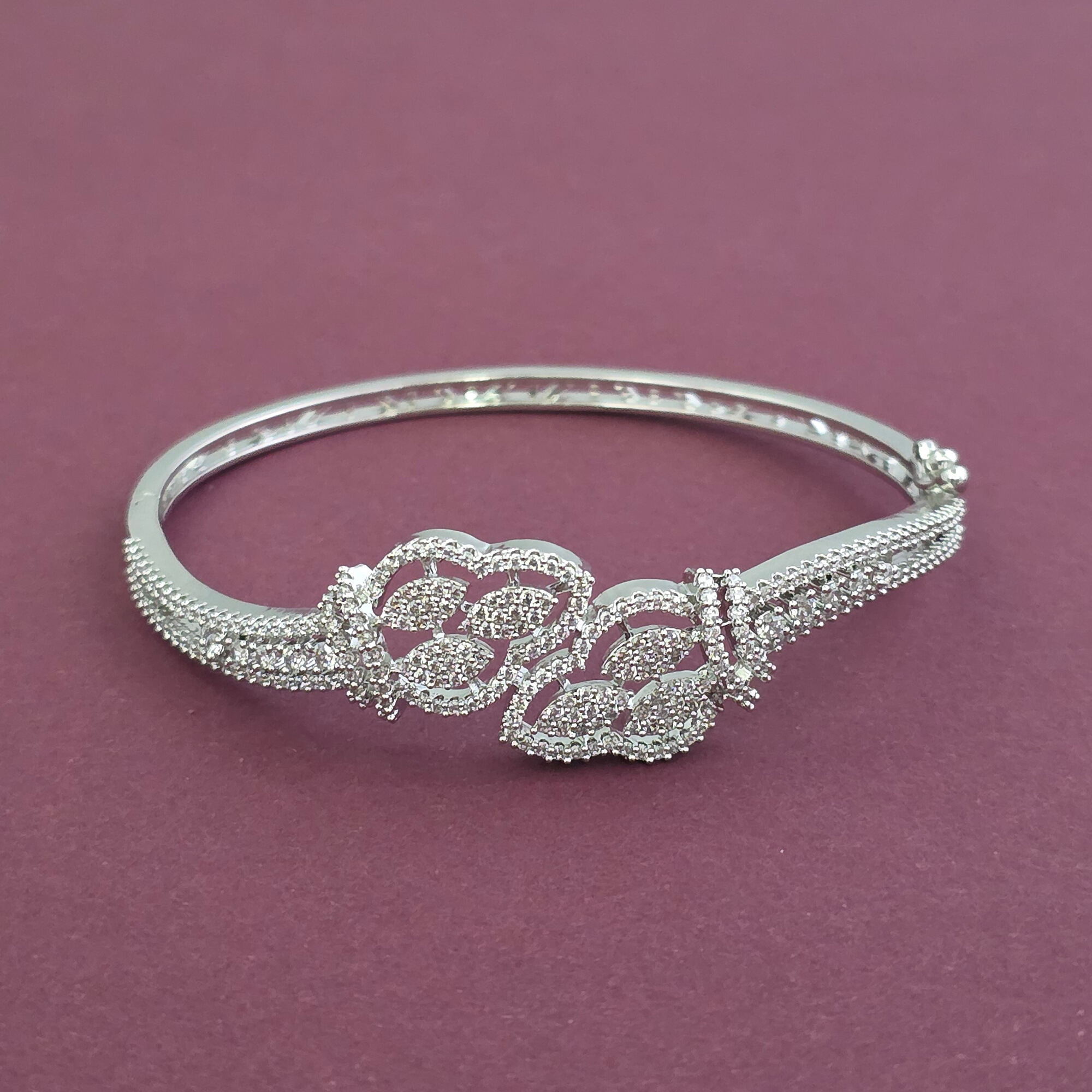 Home / American Diamond Kada / cz openable kada with mehndi 2 tone rhodium plating