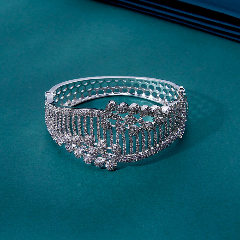 Kanhai Jewels Offers An Exclusive Collection Of Finest Quality Crafted Fashion Jewellery In Various Colors. We Make Sure That Our Collection Of Cz Openable Kada With Rhodium 2 Tone Plating Are Beautiful, Elegent & Will Surely Galvanize You, Because Our Products Are Unique, Comfortable, Fashion Forward & Very Popular For The Rich Look. Base Metal Of Our Product Is Alloy, I.E Mixing Of Copper & Brass. We Pack All The Products Using Quality Packaging Material To Ensure Safe And Secure Transportation.