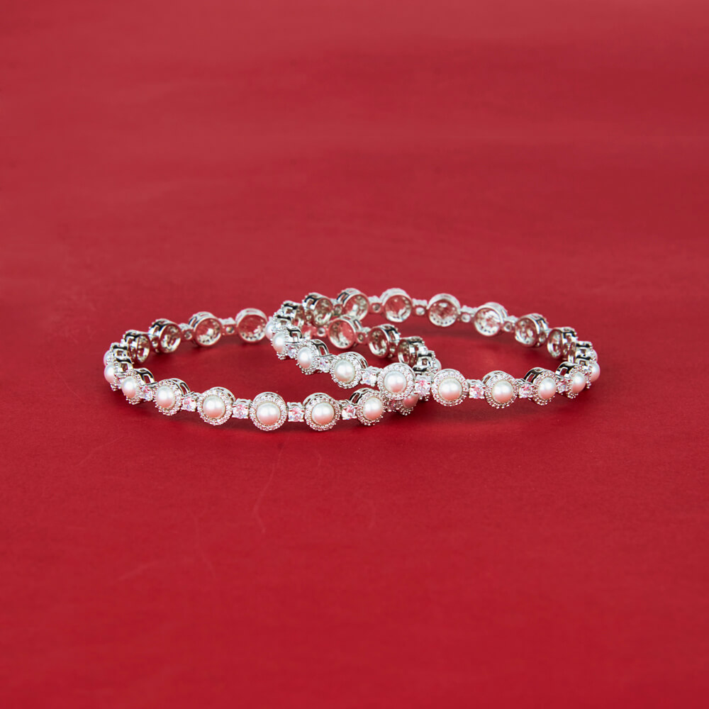 Kanhai Jewels offers an exclusive collection of finest quality crafted Fashion Jewellery in various colors. We make sure that our collection of Cz Pearl Bangles With 2 Tone Rhodium Plating are beautiful, elegent & will surely galvanize you, because our products are unique, comfortable, fashion forward & very popular for the rich look. Base Metal of our product is Alloy, i.e Mixing of Copper & Brass. We pack all the products using quality packaging material to ensure safe and secure transportation.