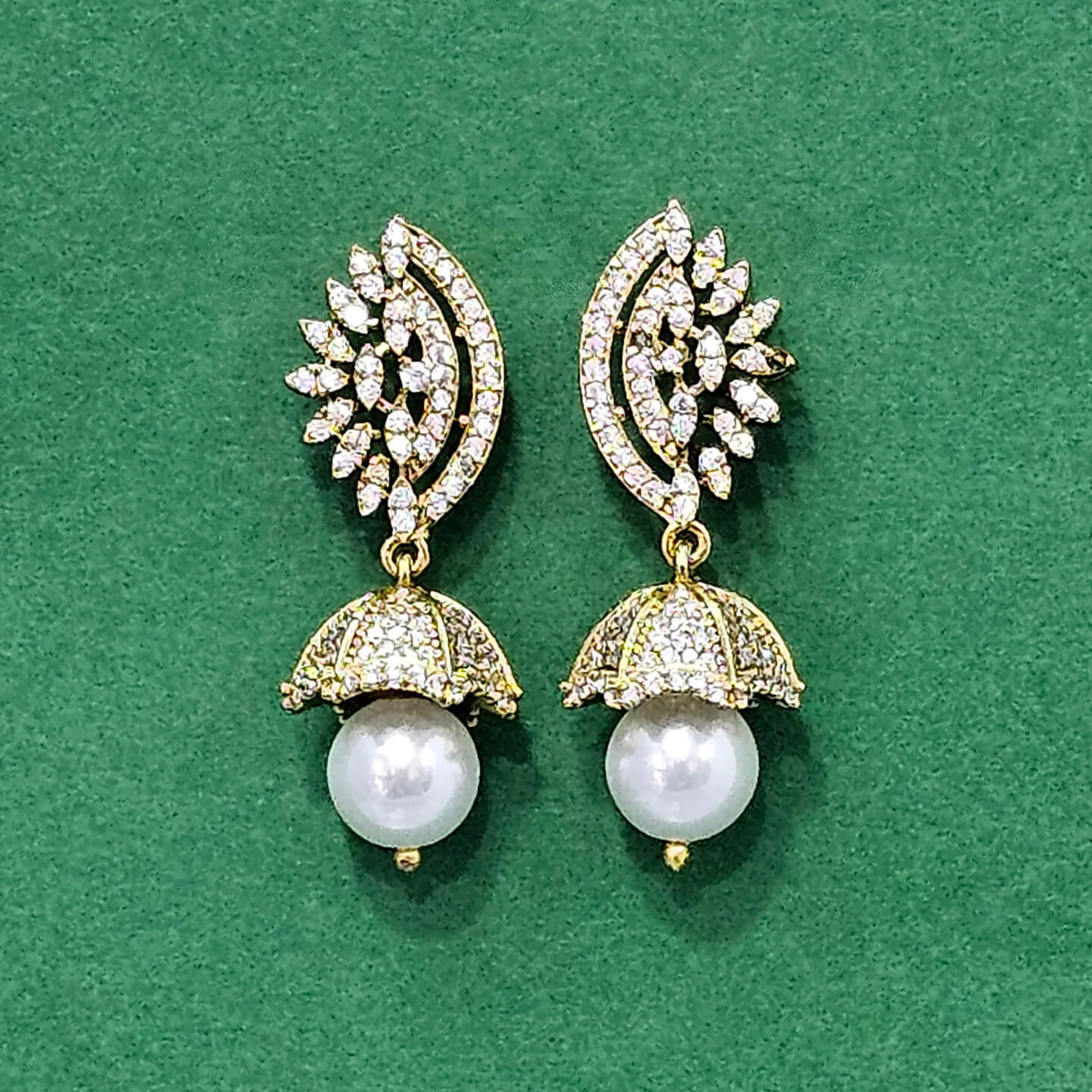 Kanhai Jewels offers an exclusive collection of finest quality crafted Fashion Jewellery in various colors. We make sure that our collection of Cz Pearl Jhumki With 2 Tone Rhodium Plating are beautiful, elegent & will surely galvanize you, because our products are unique, comfortable, fashion forward & very popular for the rich look. Base Metal of our product is Alloy, i.e Mixing of Copper & Brass. We pack all the products using quality packaging material to ensure safe and secure transportation.