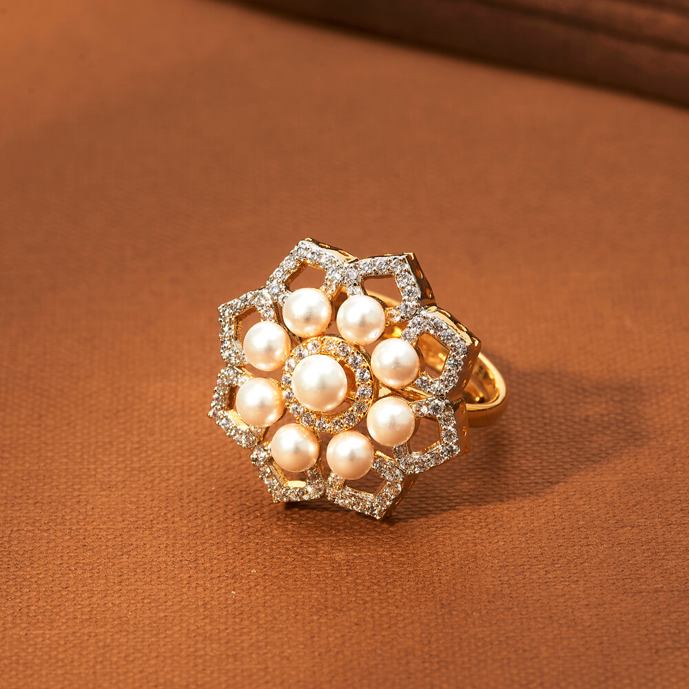 Kanhai Jewels offers an exclusive collection of finest quality crafted Fashion Jewellery in various colors. We make sure that our collection of Cz Pearl Ring With Rhodium 2 Tone Plating are beautiful, elegent & will surely galvanize you, because our products are unique, comfortable, fashion forward & very popular for the rich look. Base Metal of our product is Alloy, i.e Mixing of Copper & Brass. We pack all the products using quality packaging material to ensure safe and secure transportation.