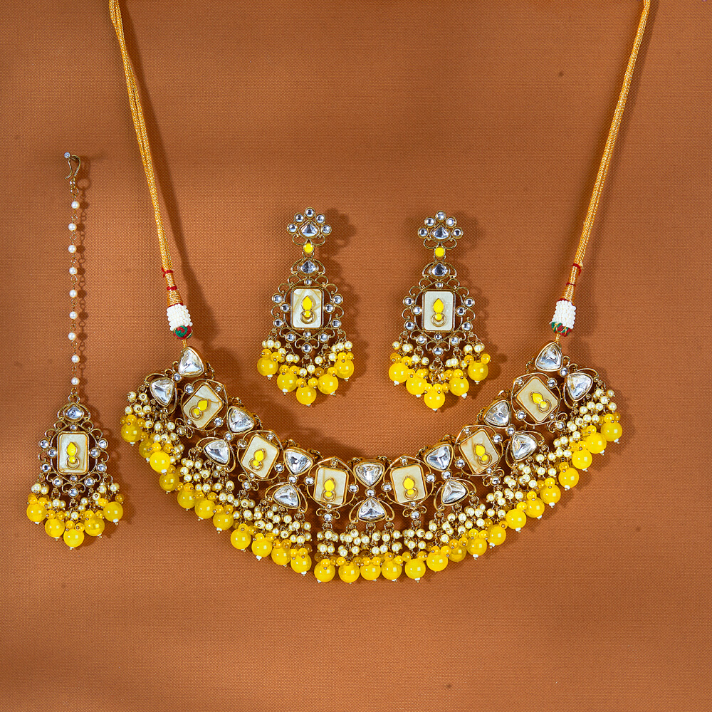 Kanhai Jewels offers an exclusive collection of finest quality crafted Fashion Jewellery in various colors. We make sure that our collection of Indo Western Beads Necklace With Mehndi Plating are beautiful, elegent & will surely galvanize you, because our products are unique, comfortable, fashion forward & very popular for the rich look. Base Metal of our product is Alloy, i.e Mixing of Copper & Brass. We pack all the products using quality packaging material to ensure safe and secure transportation.