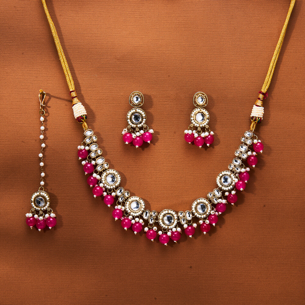 Kanhai Jewels offers an exclusive collection of finest quality crafted Fashion Jewellery in various colors. We make sure that our collection of Indo Western Beads Necklace With Mehndi Plating are beautiful, elegent & will surely galvanize you, because our products are unique, comfortable, fashion forward & very popular for the rich look. Base Metal of our product is Alloy, i.e Mixing of Copper & Brass. We pack all the products using quality packaging material to ensure safe and secure transportation.