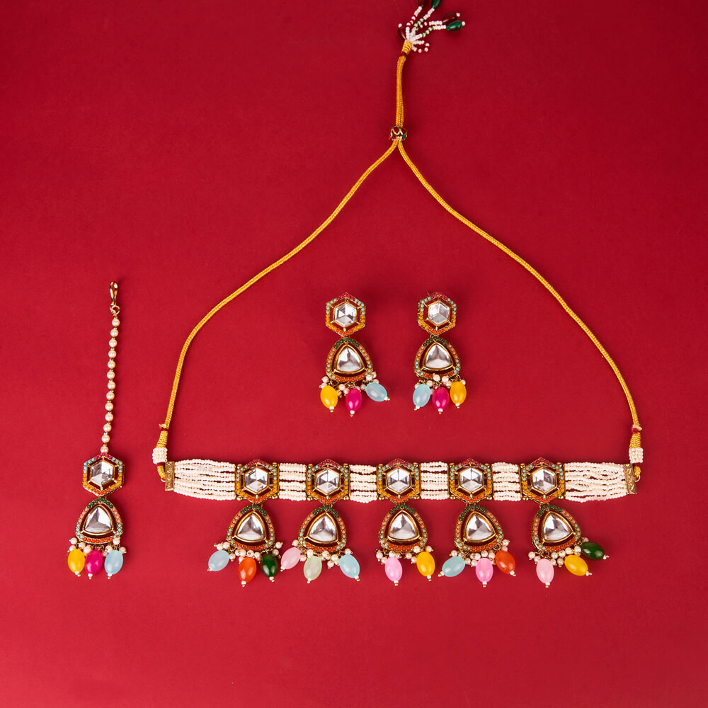 Home / Indo Western Necklace / indo western choker necklace with mehndi plating